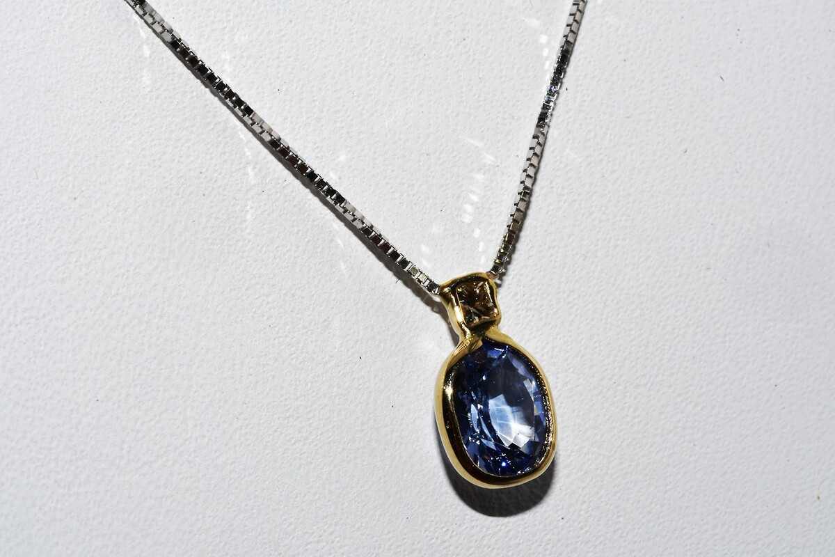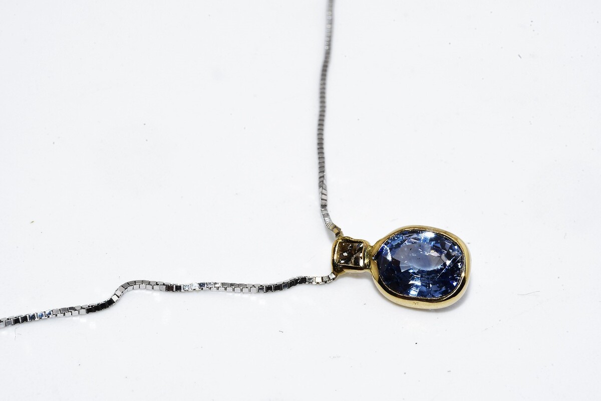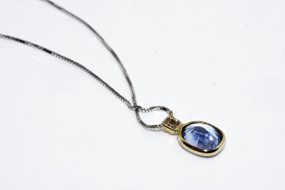 - $1,900 10K/14K Gold .89CT Natural Ceylon Sapphire & Diamond 2-Stone Necklace