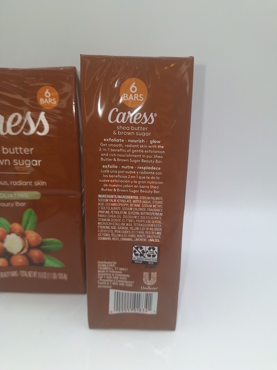 - (12) Caress Shea Butter & Brown Sugar Bar Soap Exfoliating Beauty Bars 3.15 Oz
