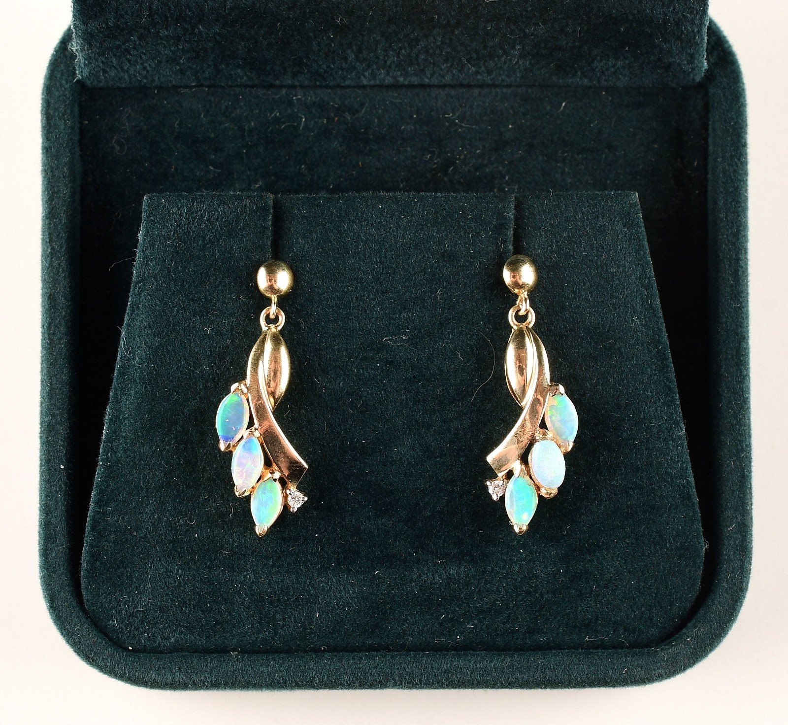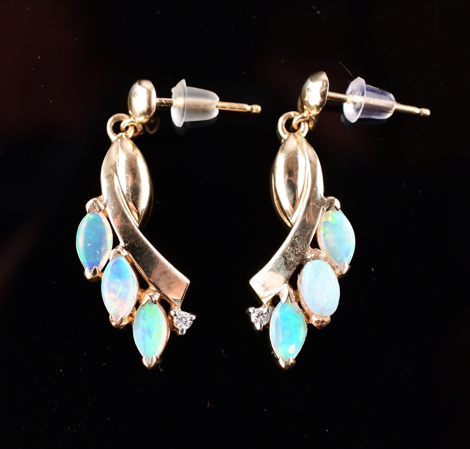 14K Yellow Gold Opal Diamond Stud Earrings