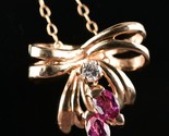 * 14K Yellow Gold Ruby Diamond Bow Pendant Necklace 17"
