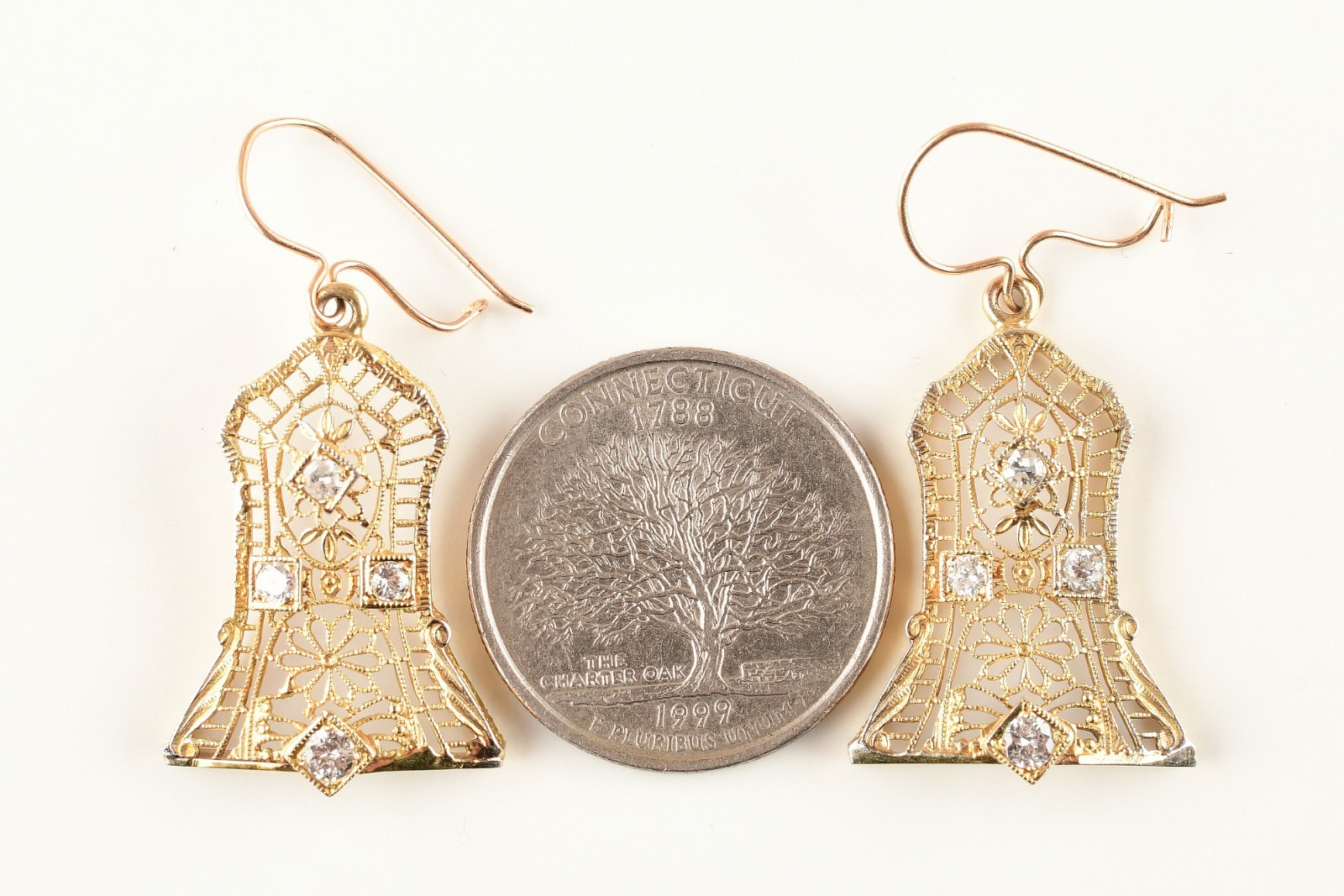 *14k Yellow Gold Diamond Filigree Bell Earrings