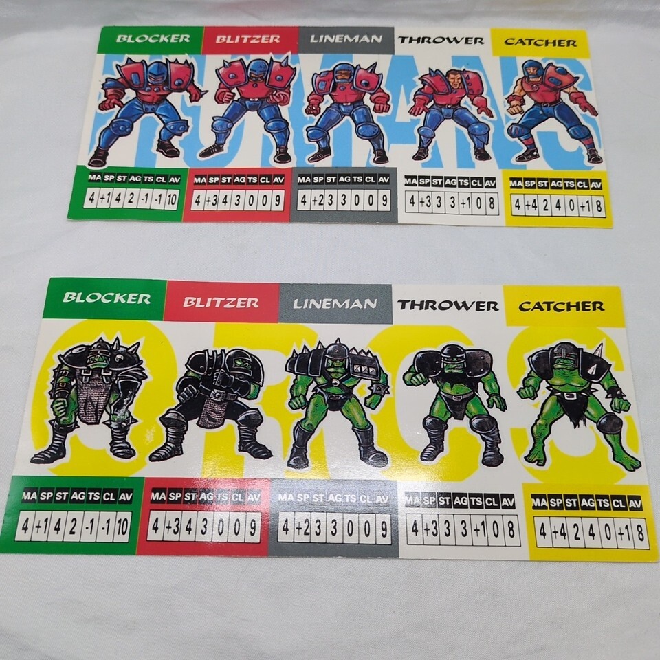 - (2) Blood Bowl 1998 Games Workshop Team Stat Cards