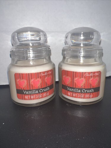 (2) Candle-Lite Mini Glass Jar Candle Vanilla Crush 3oz Valentine Hearts new unused plastic top
