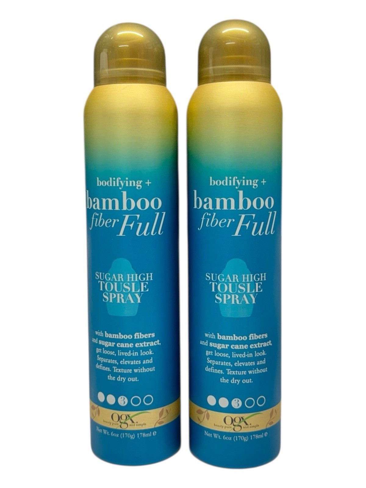 (2) OGX Bodifying Bamboo Fiber Full Sugar High Tousle Spray Level 3, 6oz Texture.