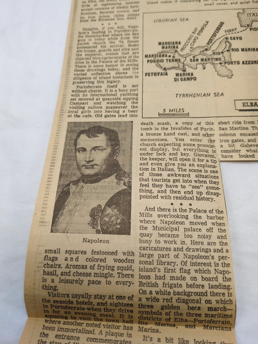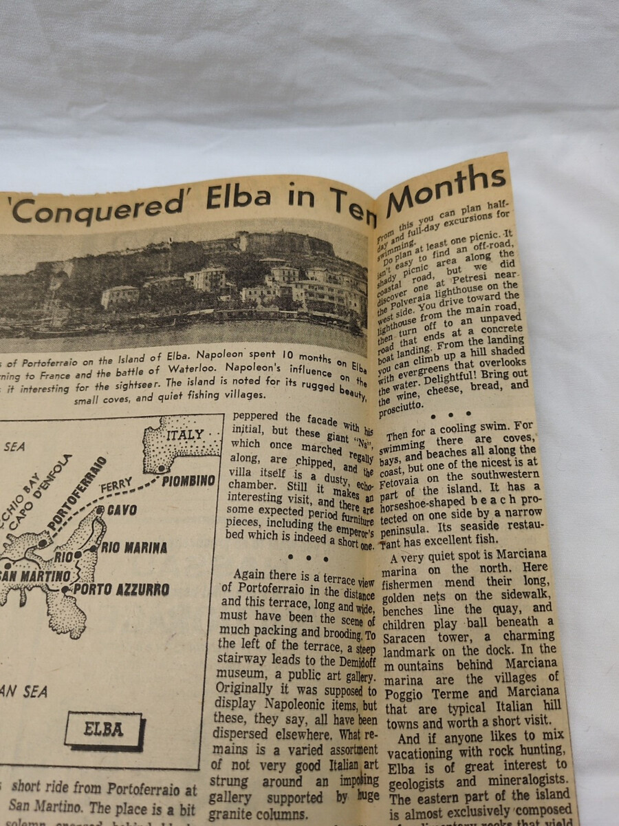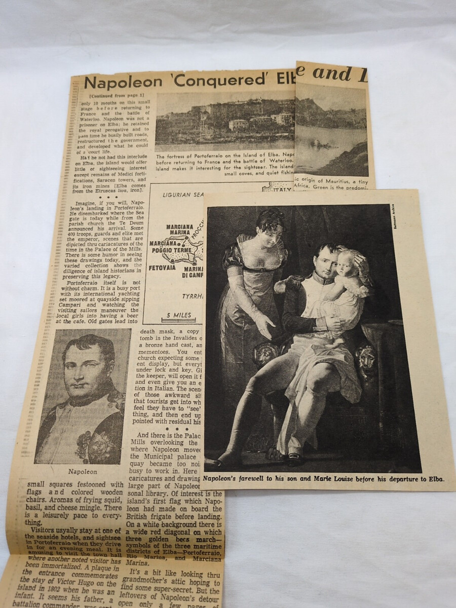 - (2) Vintage Napoleon 'Conquered' Elba Newspaper Clippings