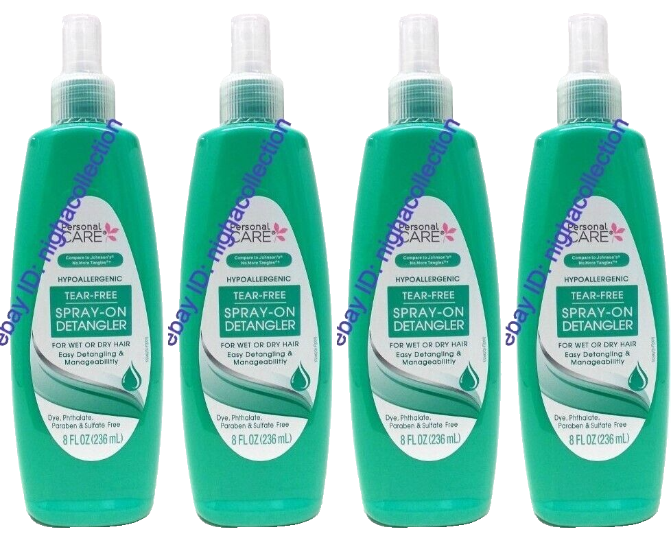 ( Lot 4 ) Personal Care DRY or WET Hair Detangler Hypoallergenic Tear-Free Spray-On 8 oz Each