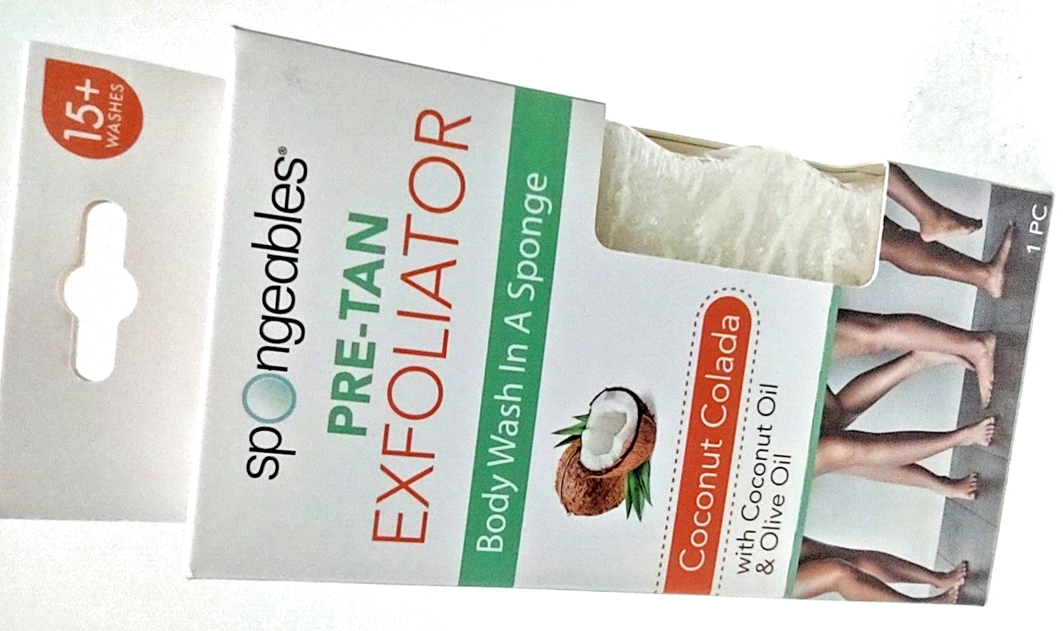 ( 4 ) Spongeables Pre-Tan Exfoliator Body Wash Sponge Coconut Colada & Olive Oil