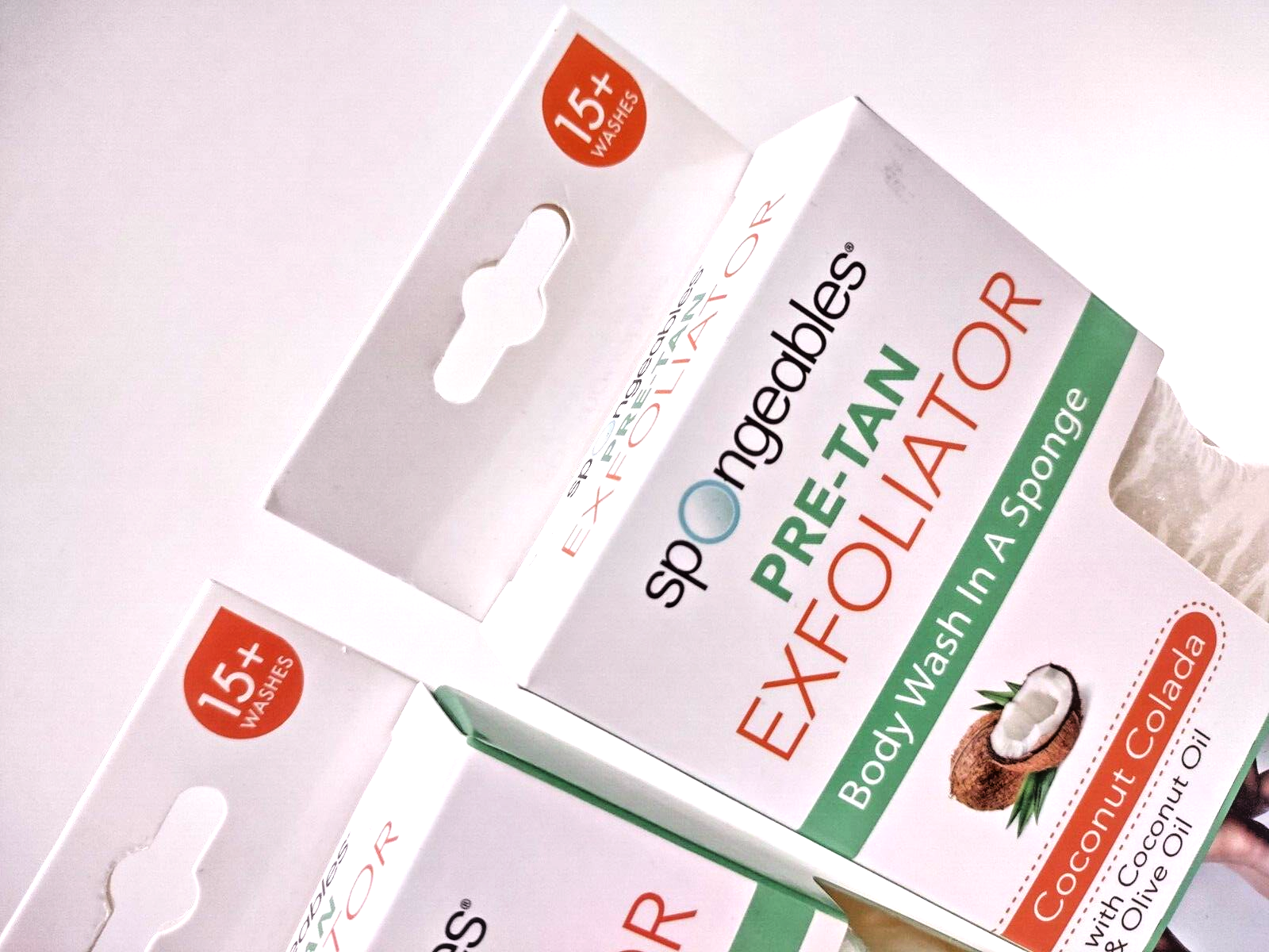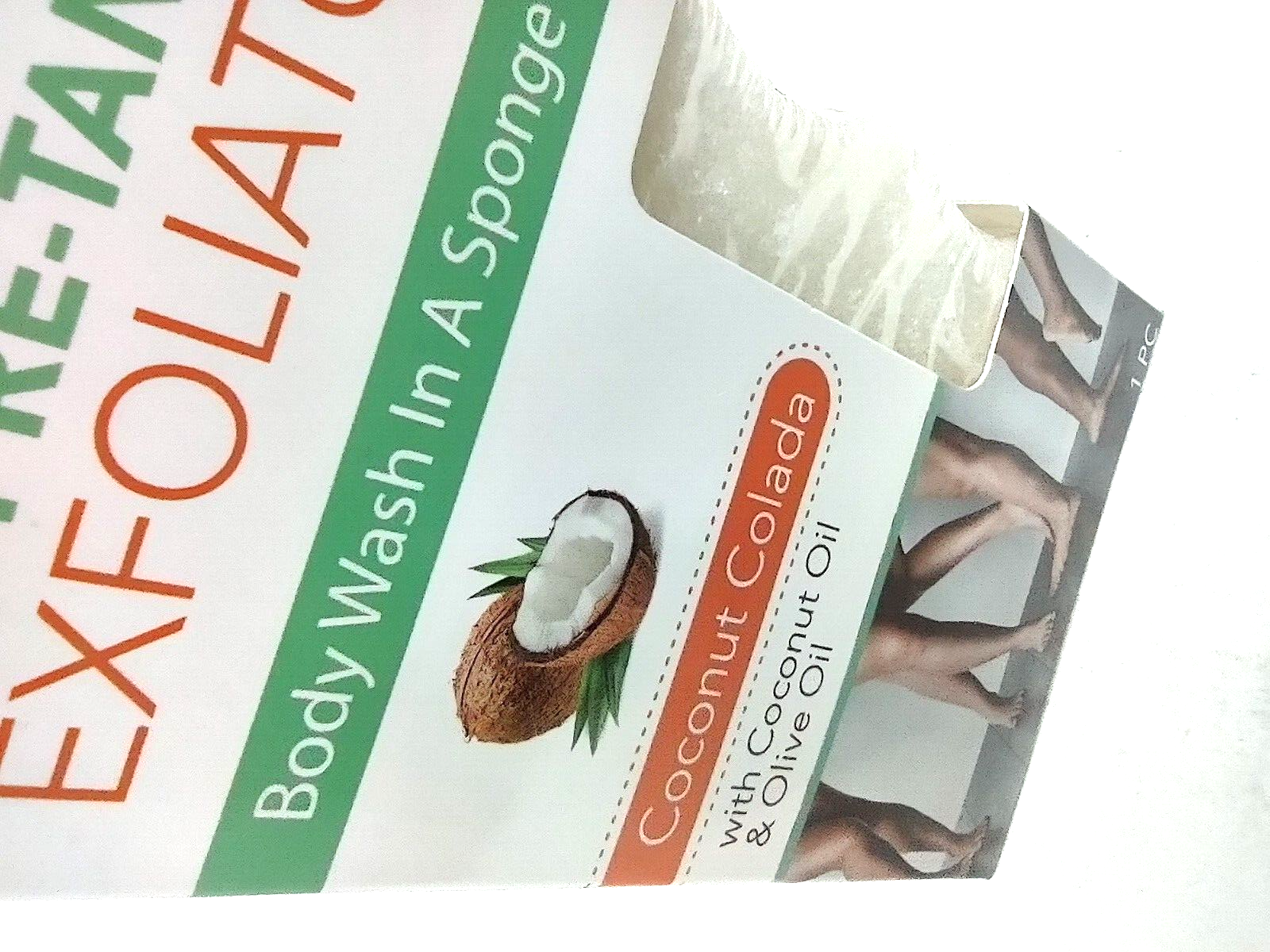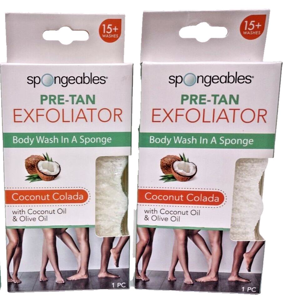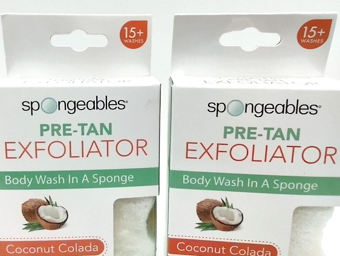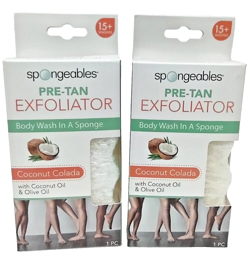 - ( 4 ) Spongeables Pre-Tan Exfoliator Body Wash Sponge Coconut Colada & Olive Oil
