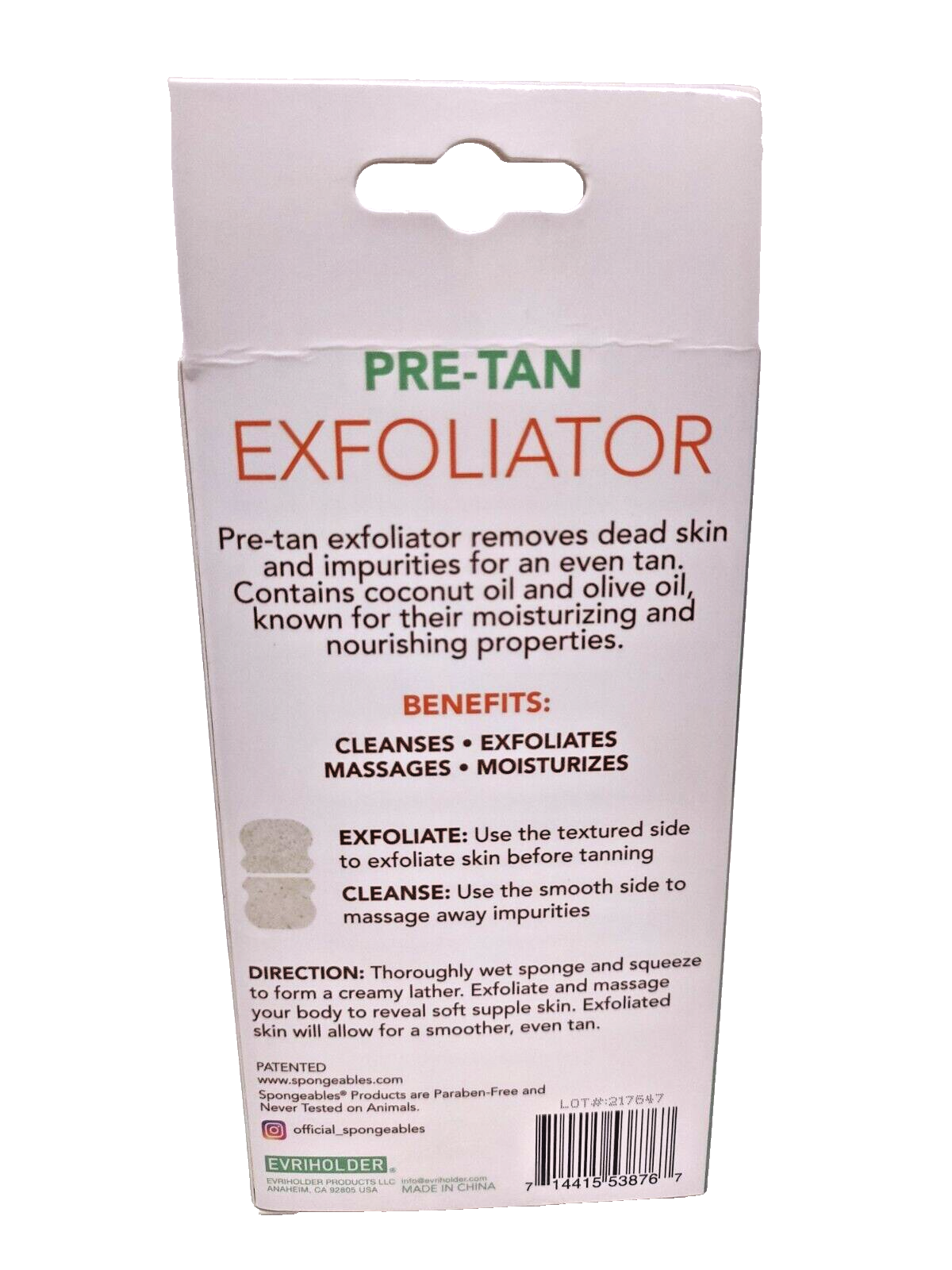 Spongeables Pre-Tan Exfoliator Body Wash In A Sponge contains a luxurious body wash