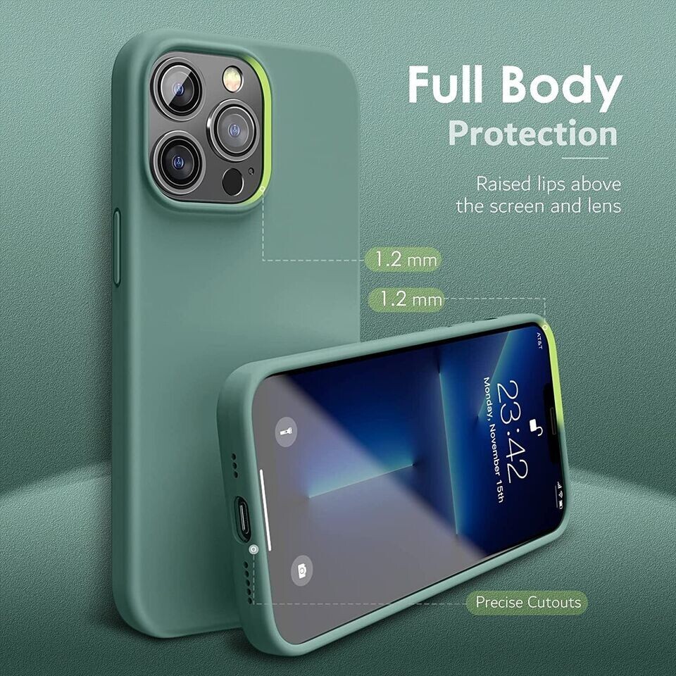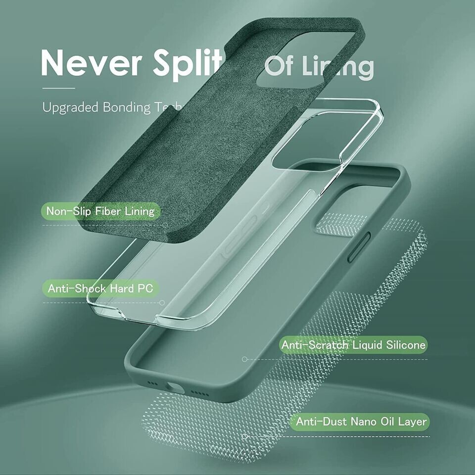 Durable Silicone Comfortable Grip -- Designed for iPhone 13 Pro Max case with premium liquid silicone material, offering silky touch feeling but not slippery grip. Add a layer of anti-adhesive new nano oleophobic on the back to resist 99% sticky dust, oil and hair problems