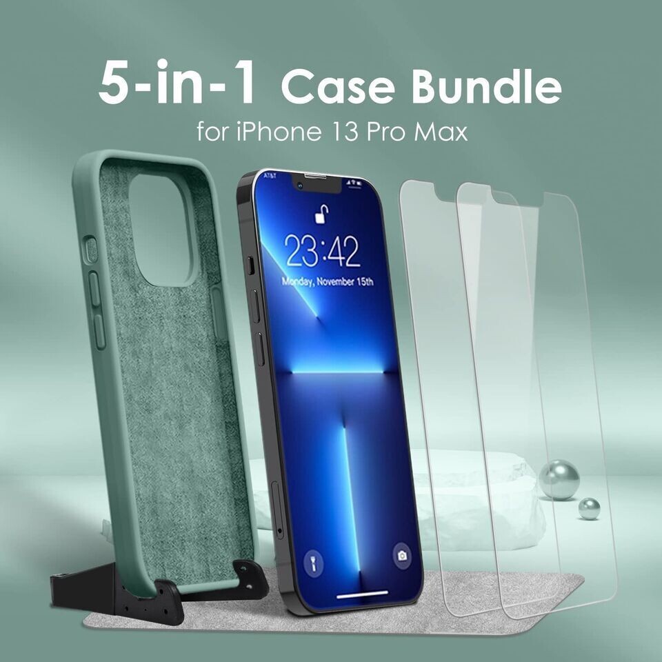 - [5 in 1] Compatible With iPhone 13 Pro Max Silicone Case,2 Pack Screen Protector