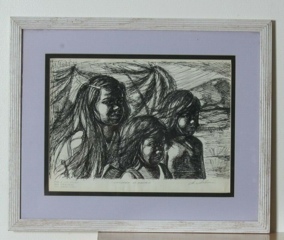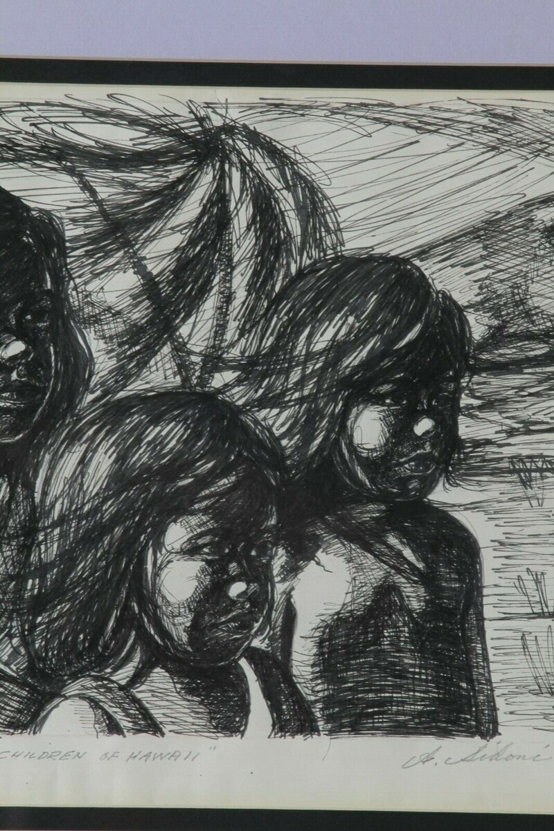 - " Bambini Di Hawaii " Anthony Sidoni Penna E Inchiostro Studio per Pittura a