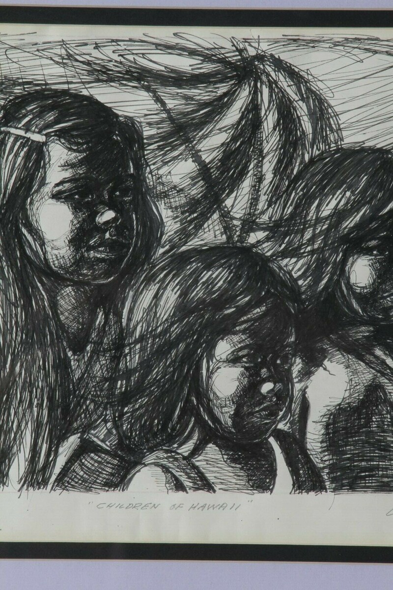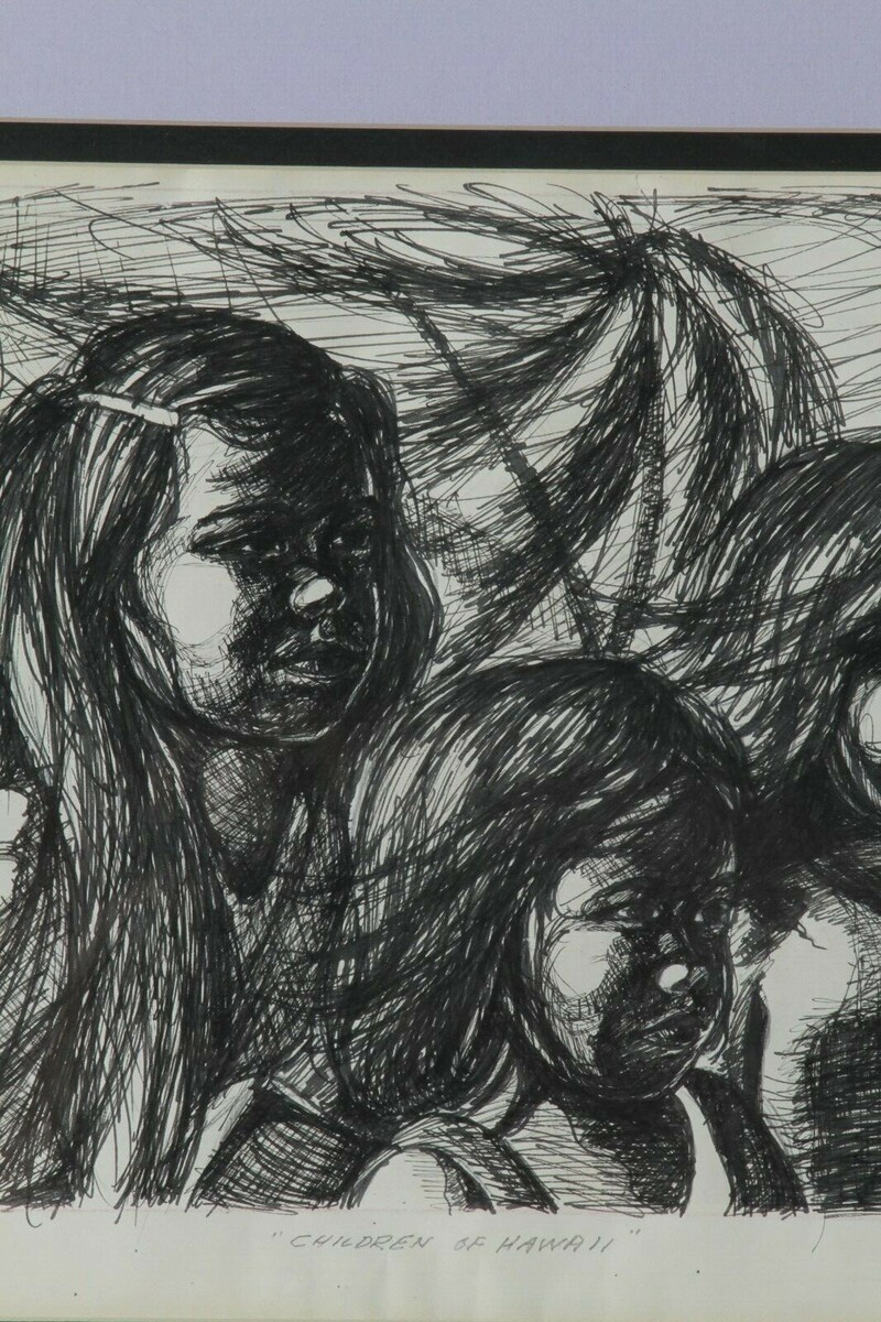 "Children of Hawaii" di Anthony Sidoni Pen Ink Study per la pittura ad olio