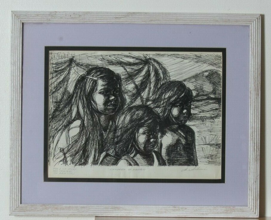 " Bambini Di Hawaii " Anthony Sidoni Penna E Inchiostro Studio per Pittura a