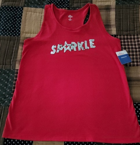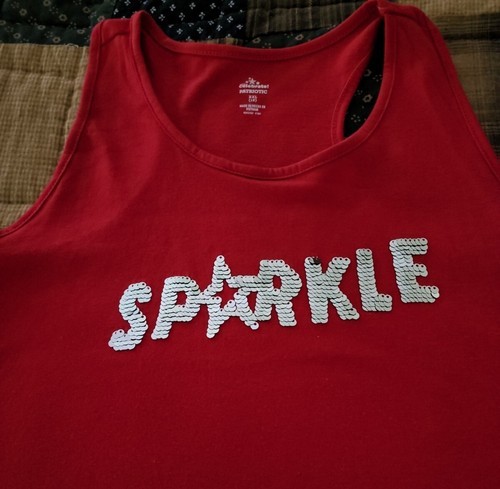 This sale is for One (1) Celebrate Brand Tank Top Girls Size XXL (18) Measures approximately 23" from shoulder seam to hem Measures approximately 16" armpit to armpit The word SPARKLE is spelled out in sequins across front in either blue or silver (flip sequins for whatever color you want) Top is Red in color 60% Cotton 40% Polyester Machine wash ~ Tumble dry Tank top is new with tags Please view photos for a good description of this item (I photographed sequins in both blue silver in the 2nd photo - it is actually 2 shirts in picture) Thank you!