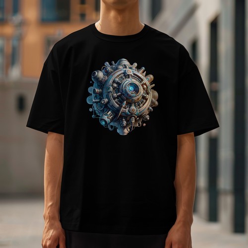 "Step into the future with this 'Cyber Gears' t-shirt, featuring an intricate design of a high-tech mechanical sphere with glowing blue accents. This futuristic artwork blends robotics and sci-fi aesthetics, perfect for fans of advanced technology, cyberpunk culture, and space exploration. The detailed gears and industrial components give this shirt a sleek, modern look, making it ideal for those who love bold, eye-catching designs. Wear it to show your passion for tech innovation and futuristic style."
