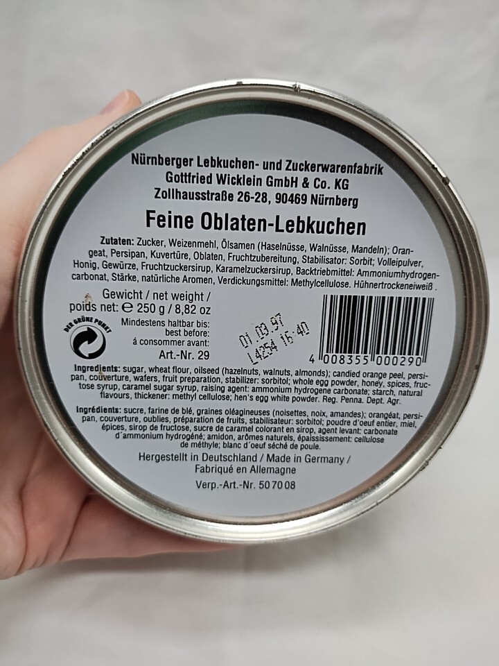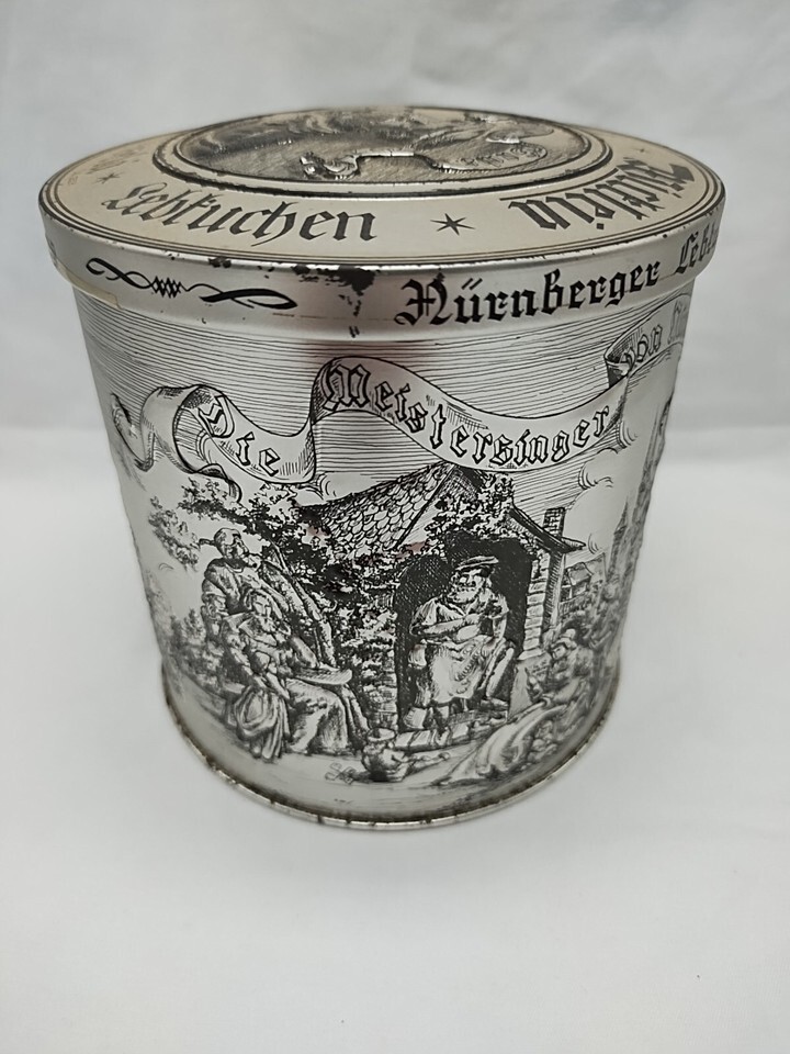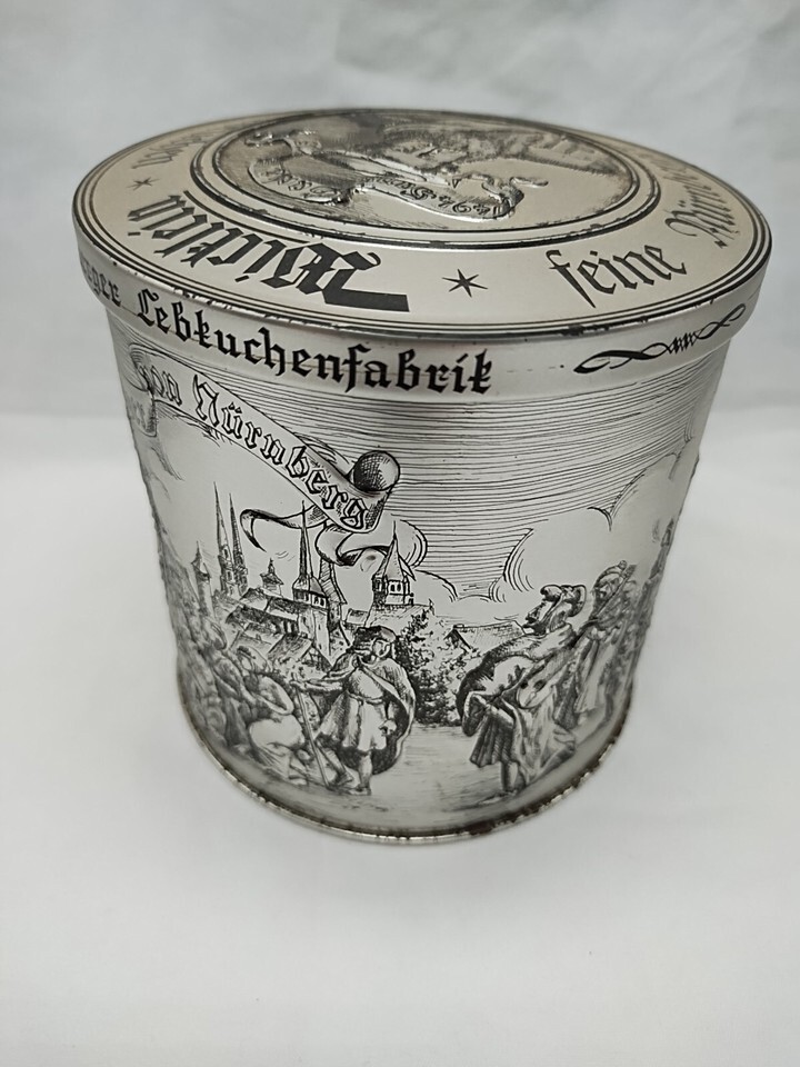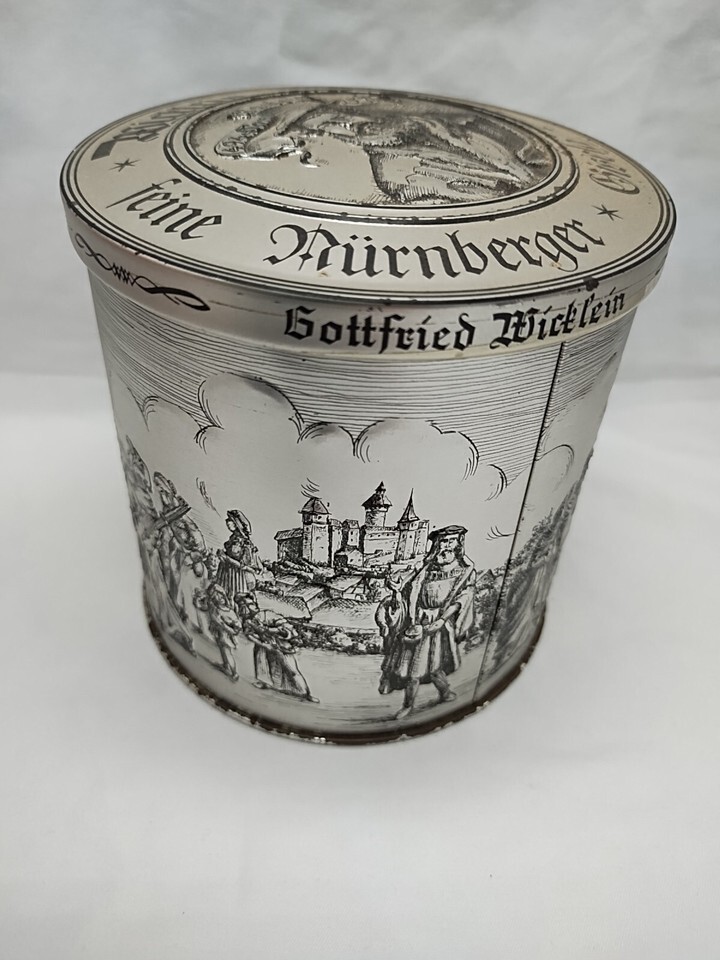 - *Empty Tin* Feine Oblaten-Lebkuchen Wicklein Round Tin 4" X 4"