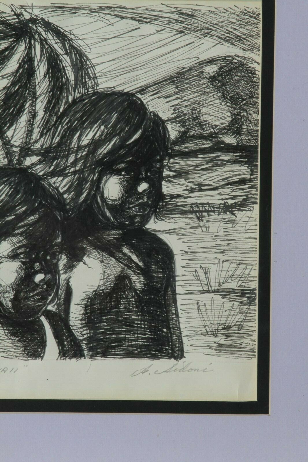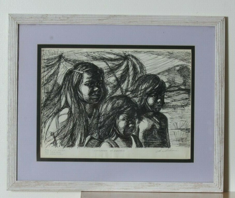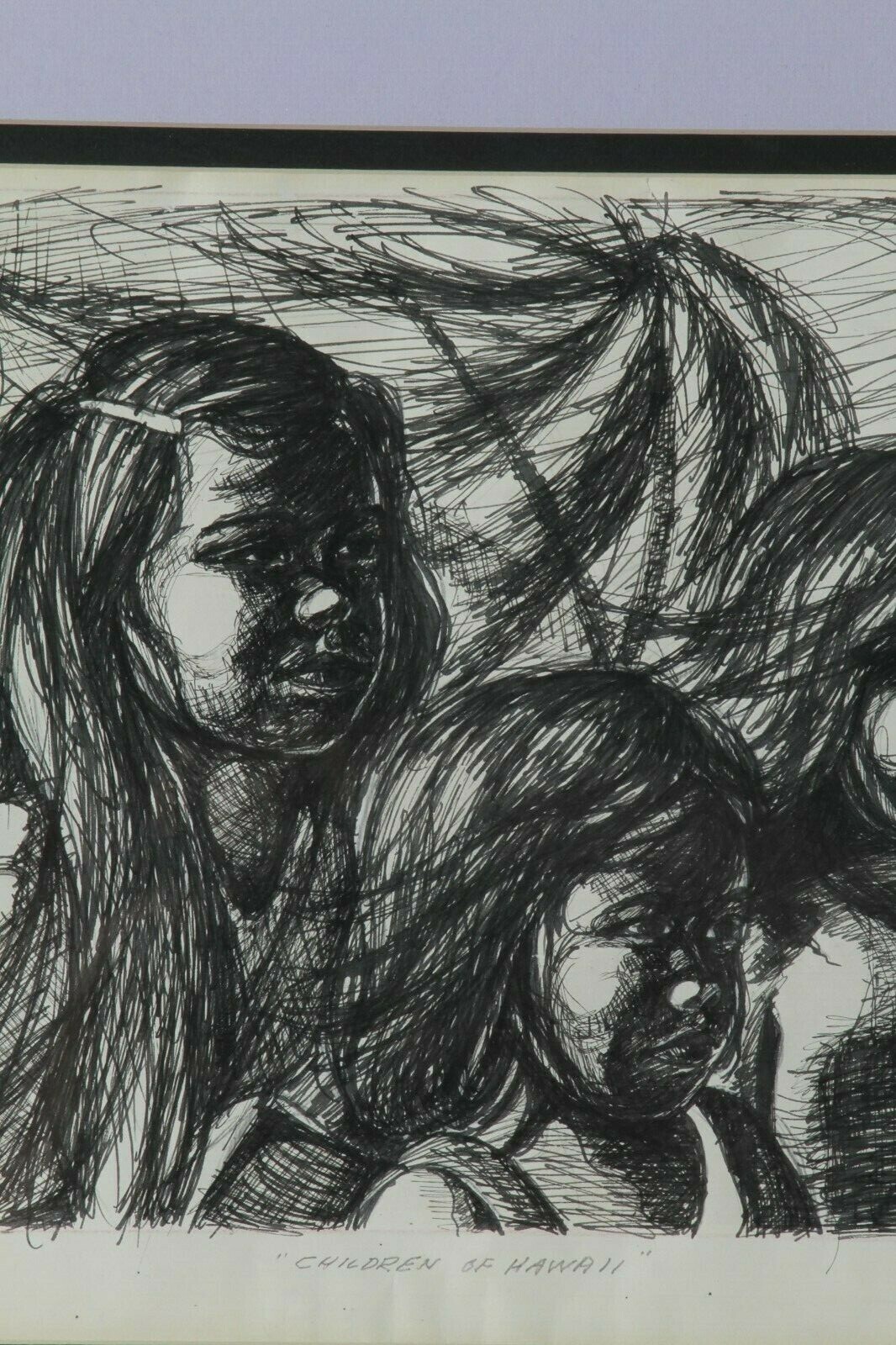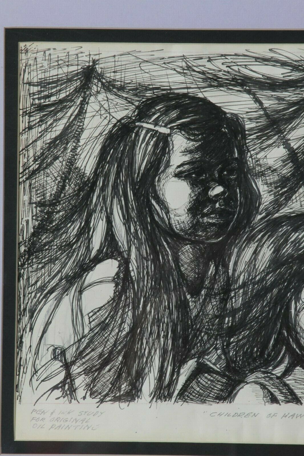 "Children of Hawaii" d'Anthony Sidoni Pen Ink Study for Oil Painting
