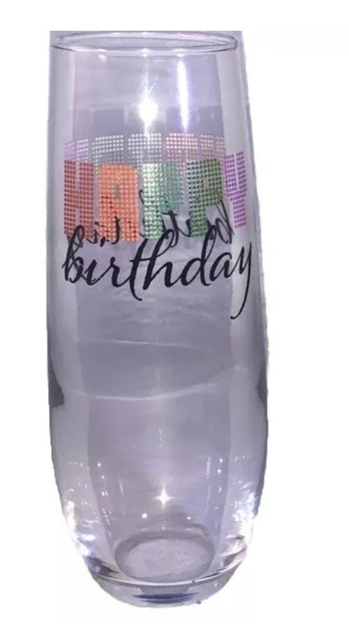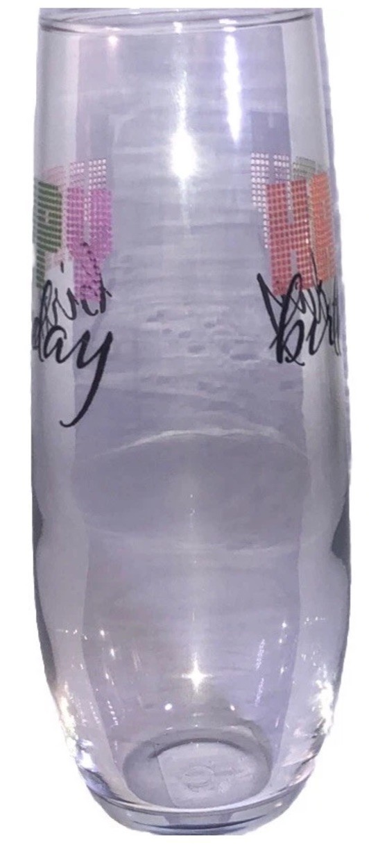 - “Happy Birthday” Cristar Clear Flute Champagne/Wine Glass 9.6oz-NEW-SHIP N 24HR
