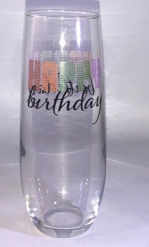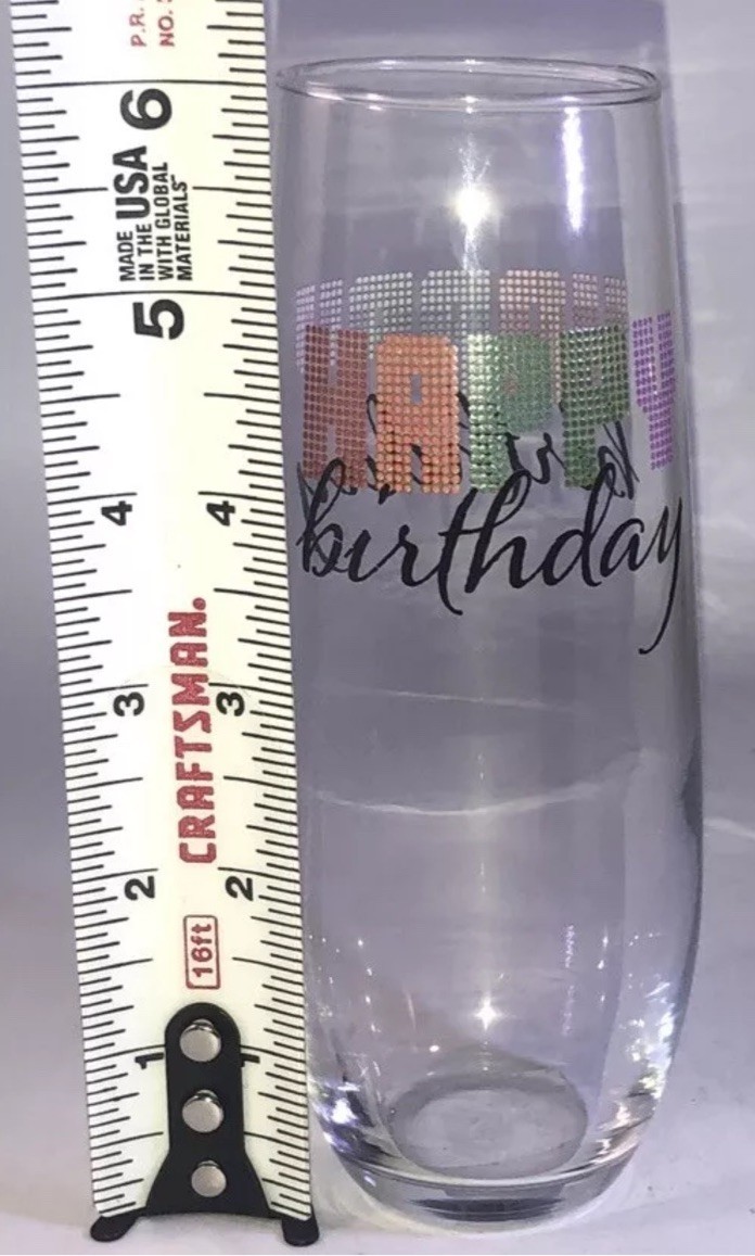 “Happy Birthday” Cristar Clear Flute Champagne/Wine Glass 9.6oz-NEW-SHIP N 24HR