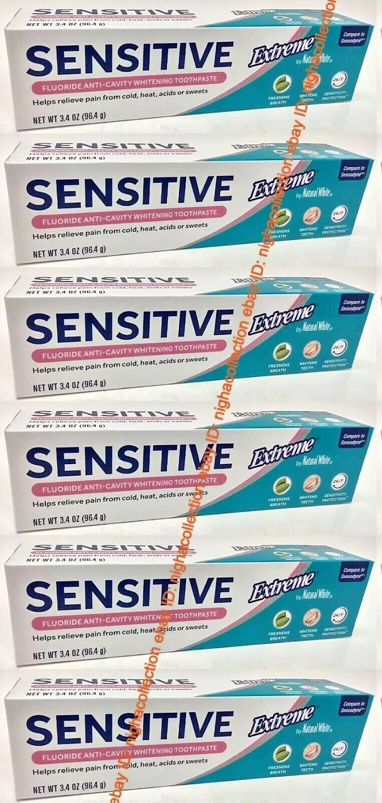 - ( LOT 6 ) Natural White Sensitive Extreme Whitening Toothpaste 3.4 oz Ea SEALED