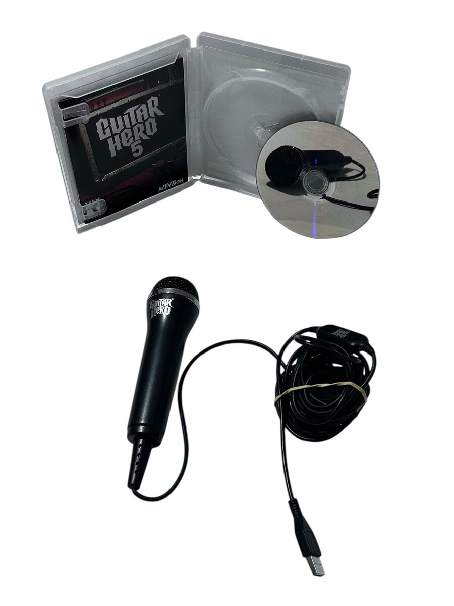 (Lot) Microphone + Guitar Hero 5 Sony PlayStation 3 PS3 2009 Complete Tested CIB