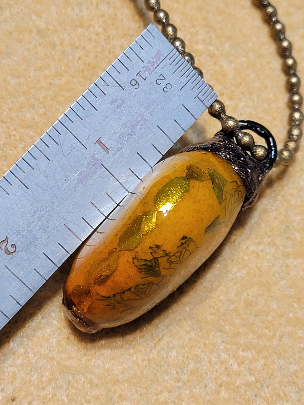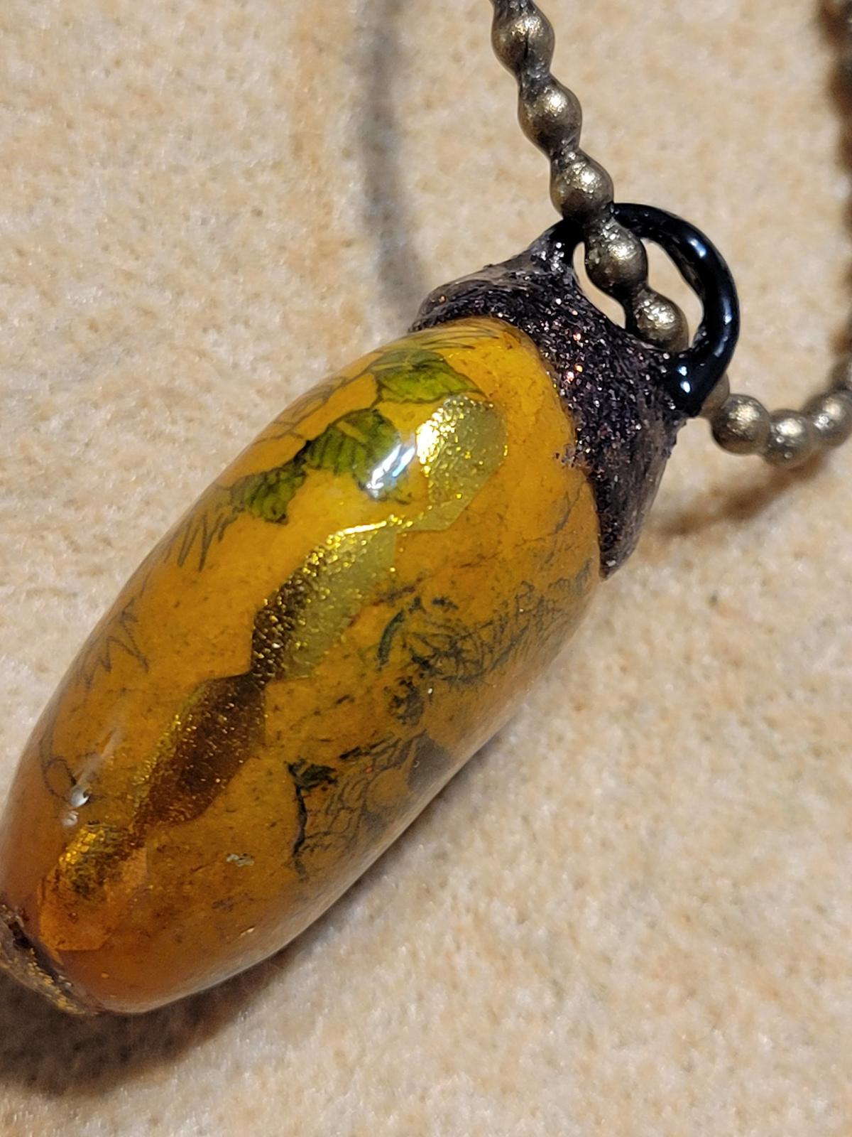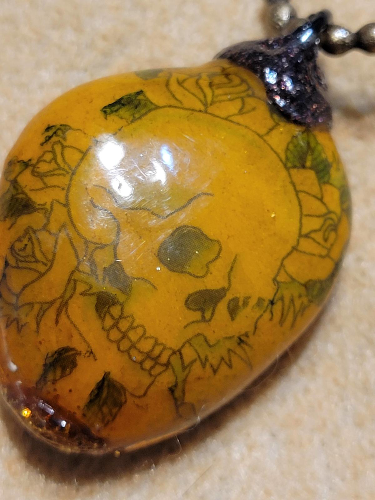 Dusted off after a couple of yrs......FRANKIE'S brings you a fine skull necklace cleverly named........this item, made in indust. bead(heavy)has been coated in brown metallic pigment enamel an coated X10 in Liquid Glass all over giving high refraction rate......sun pinpoint,will turn a few heads.......will not chip,wear,split,crack,chip,uvresist,scratchresist......its permanent,as with all work@ this studio.......ass full GALLERY@ETSY.com(154homebasepost)moving on to 1000 awsome works of art.....Also note this necklace inventory is split between "artisan" and "fashion" to receive wider traffic.......THANKS! welldressedattic.