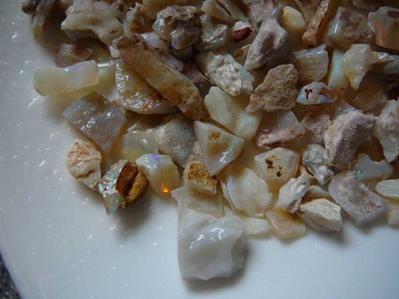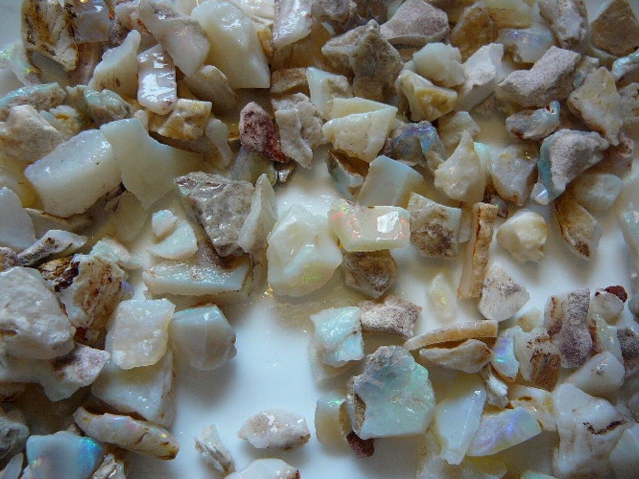 Affordable grade of opal with large/medium sized pieces of opal with red/blue/green/yellow flash fire layers.