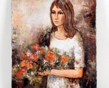 "Offering Flowers" by Celine, Woman with Bouquet, Oil Painting on Canvas, 20x16