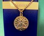 Comes with a cable 24" oxidized silver plated. It does not have a clasp to put on remove, it's over the head. The medal measures .75 in diameter. Comes from the Berkander Collection. Comes in a acrylic gift box.