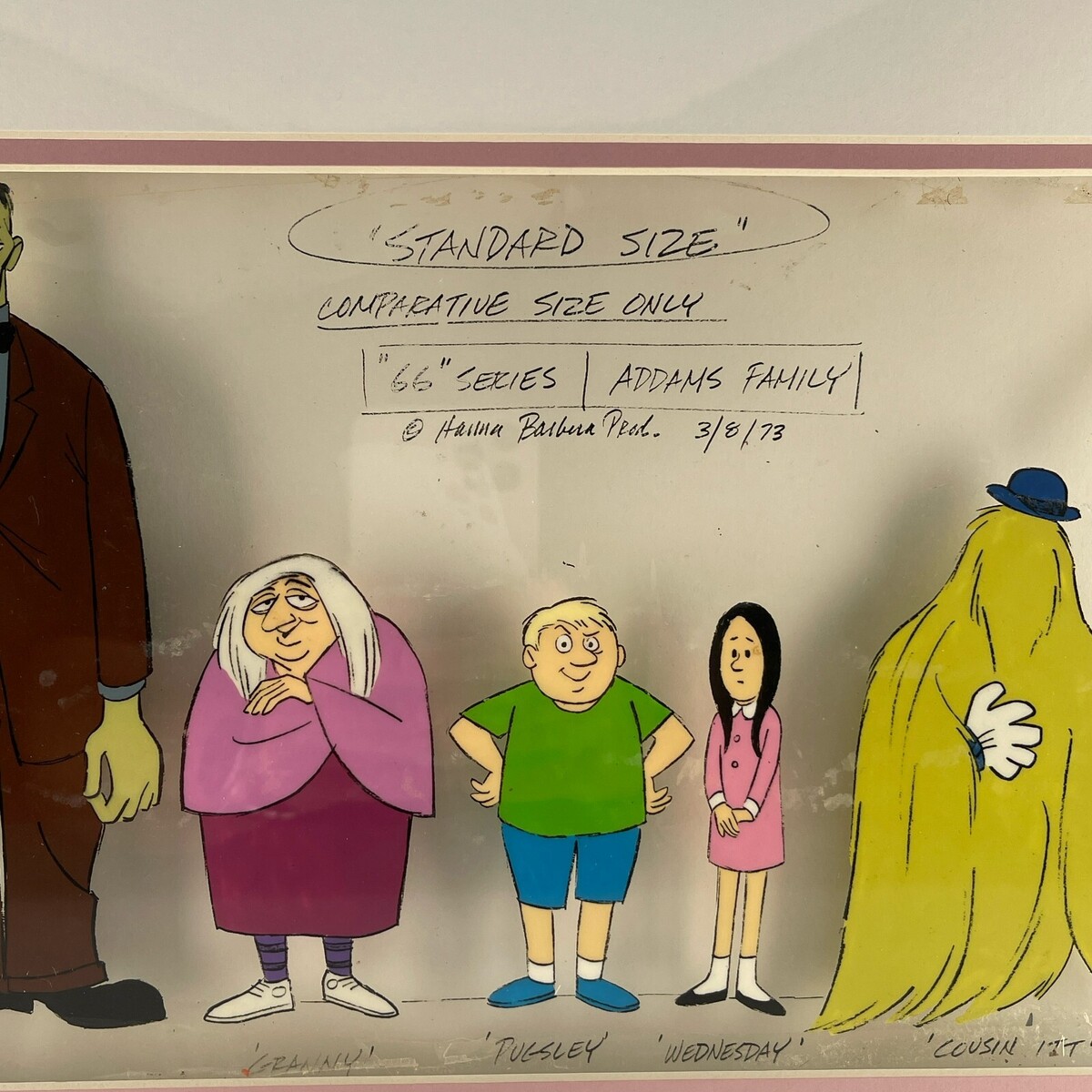 "The Addams Family" 1973 Hanna-Barbera Animated Character Size Acrylic Cel Amazing Animation Cel of Entire Addams Family (1973) Includes 1 Hand-Painted Annotated Image for each Family Member Size comparison for animator reference Original Production Cel Frame Dimensions: 16-5/16" x 31-1/16" Image Dimensions: 7-1/4" x 23-3/4" Amazing Piece of Animation History! All items are professionally packaged and shipped. All shipments include insurance and delivery confirmation or signature confirmation. Local Pick-up is available in our showroom. (Contact us for payment methods to pay on pickup.) *The customs requirements for each country, including all import duties, taxes, and fees are the responsibility of the buyer. All international packages will have the required customs declaration and value of order. California Buyers: 9% sales tax will be added. Returns Policy: Your continuing satisfaction is very important to us. We offer a 14 day money back return policy. If you are unhappy with your purchase for any reason, please notify us so that we can begin the returns process. All items must be returned in the same condition that it was received. About Us: As one of the largest Coin Jewelry Companies on the west coast, and also one of the best gold buyers, Continental has been the destination for coins, jewelry, fine art and collectible buyers and sellers for over 45 years. Whether you?re looking to buy items or interested in selling gold and silver for cash, sell coins, or a variety of other collectibles, we are here to help. All items for sale are available for viewing at our Southern California showroom. We would like to thank all of our loyal customers for their continued support. If you have any questions, comments or concerns, please click "Ask a question" below, and we will respond as soon as possible. Thank you. Continental Coin and Jewelry Company Web Department: Monday - Friday, from 10:30am - 6pm PST Reference Item #A04201503C CM 5-15-25 Visit Our Store: Continental Coin and Jewelry Your continuing satisfaction is very important to us. We offer a 14 day money back return policy. If you are unhappy with your purchase for any reason, please notify us so that we can begin the returns process. All items must be returned in the same condition that it was received. As one of the largest Coin Jewelry Companies on the west coast, and also one of the best gold buyers, Continental has been the destination for coins, jewelry, fine art and collectible buyers and sellers for over 45 years. Whether you?re looking to buy items or interested in selling gold and silver for cash, sell coins, or a variety of other collectibles, we are here to help. All items for sale are available for viewing at our Southern California showroom. We would like to thank all of our loyal customers for