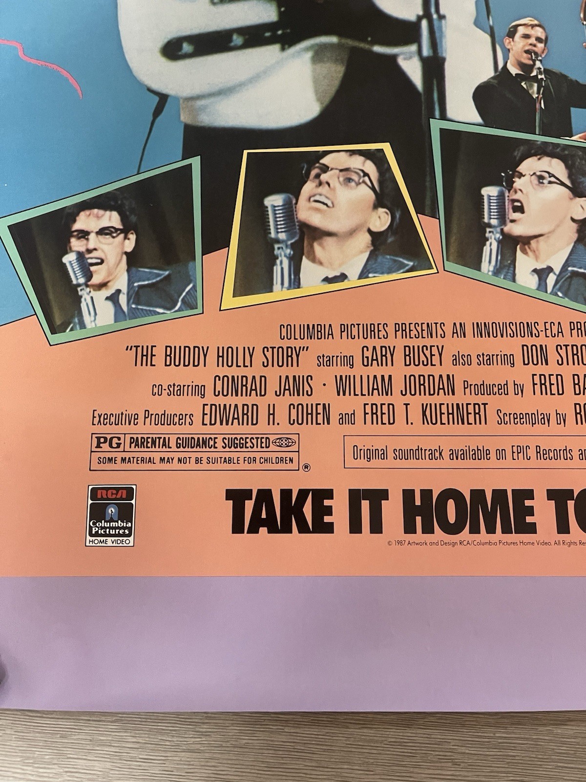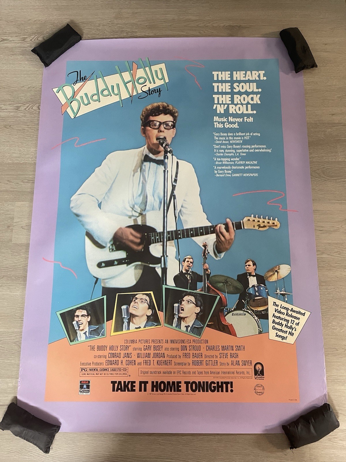 ?The Buddy Holly Story? Original Movie Poster Video Store Release Promo This is the rare promotional poster for the video release in the 80s. It has been stored rolled over the years. It was originally folded. Please see pictures for details on condition. The poster will be shipped rolled in a rigid tube for safety. We are happy to combine shipping on multiple posters! Be sure to check out our other vintage movie posters. We will have new listings daily!