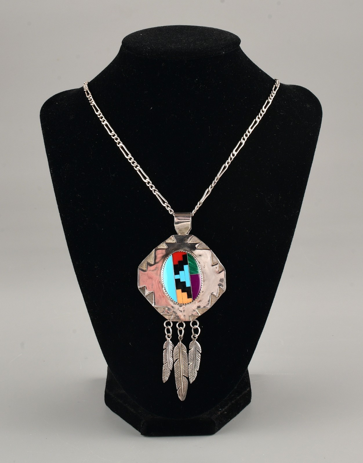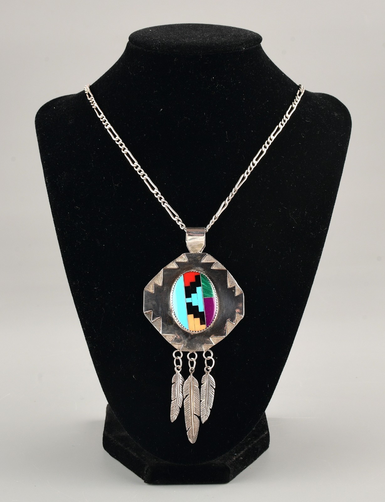 - *Vintage Southwestern Navajo Multi-Stone Inlay Sterling Silver Necklace