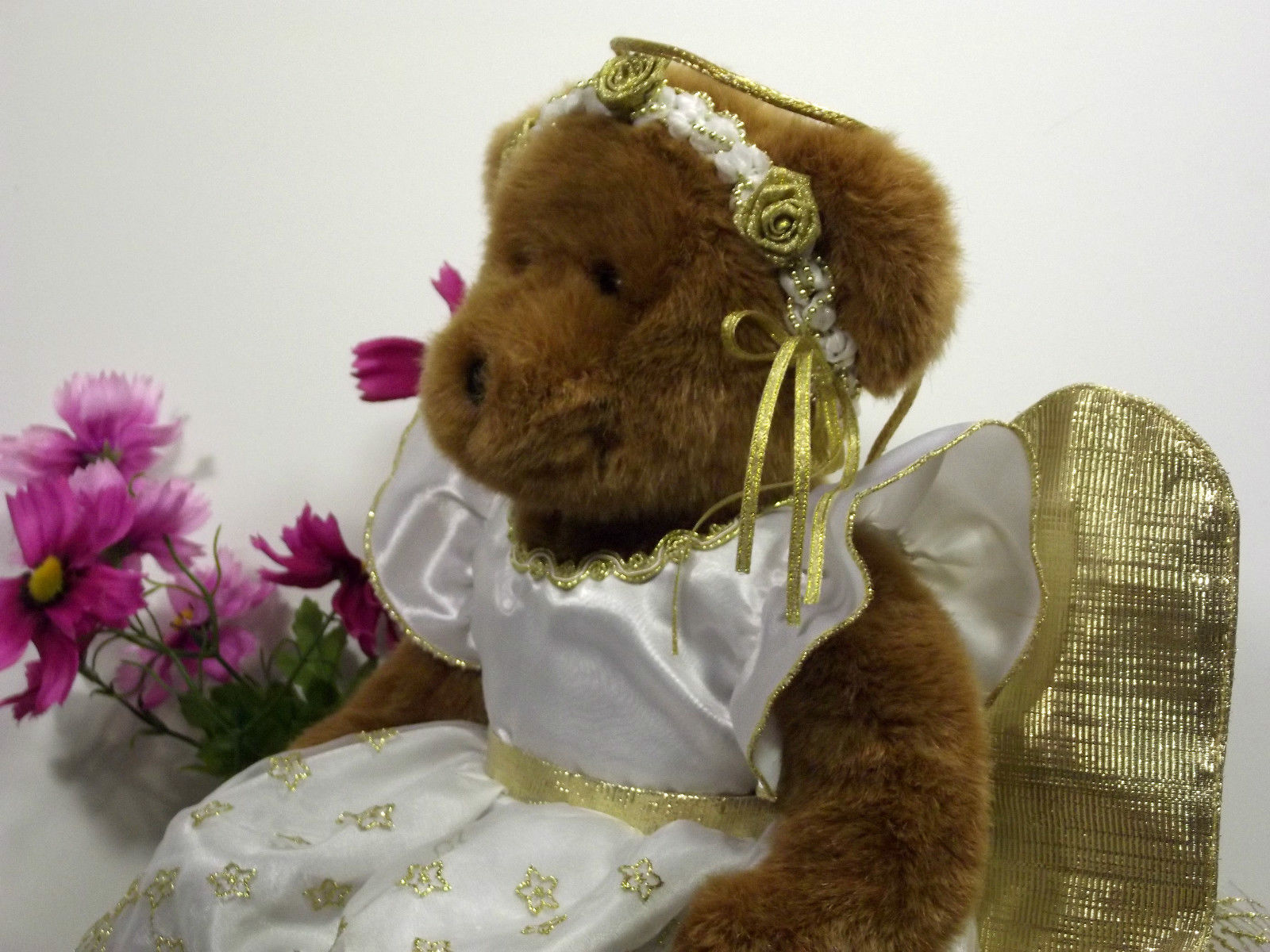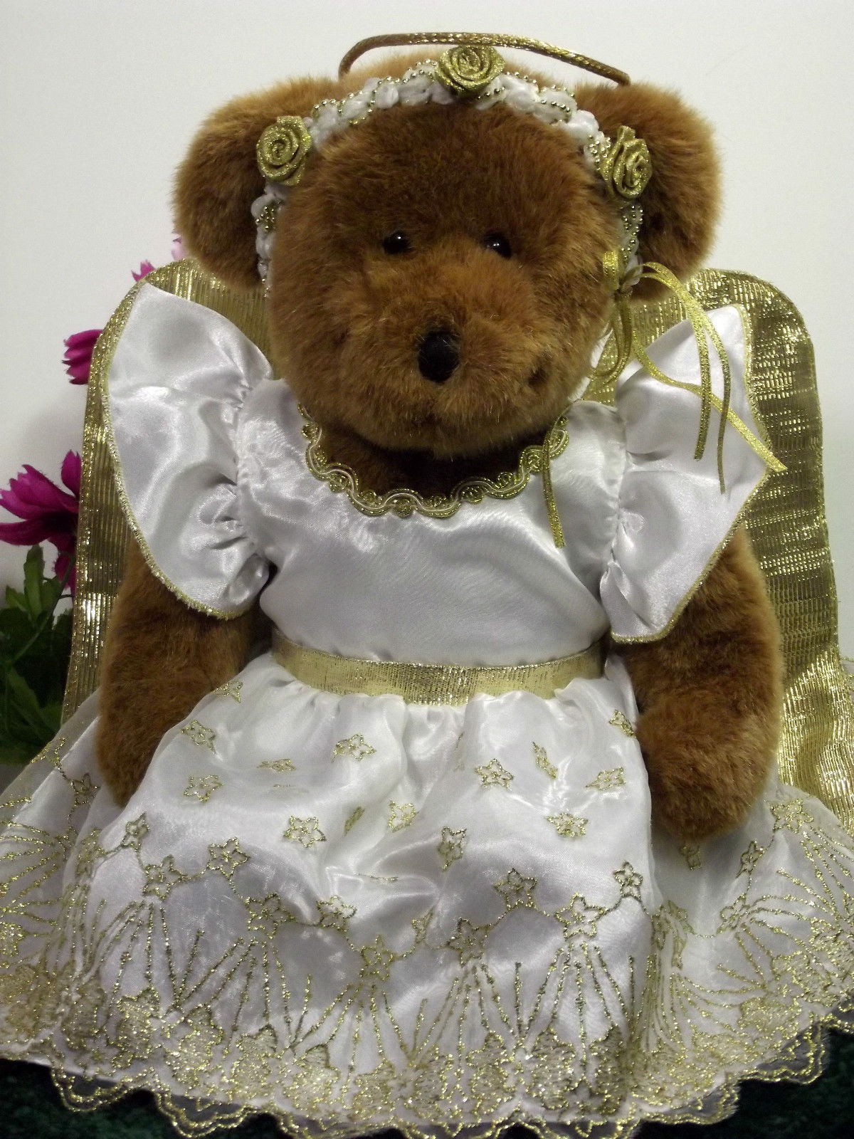 - (Y24K3B3) Build-A-Bear Plush Brown Bear Stuffed Animal Angel White Gold Dress