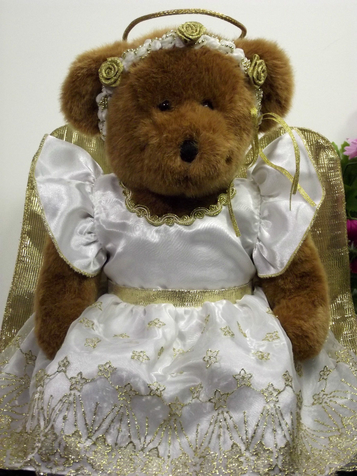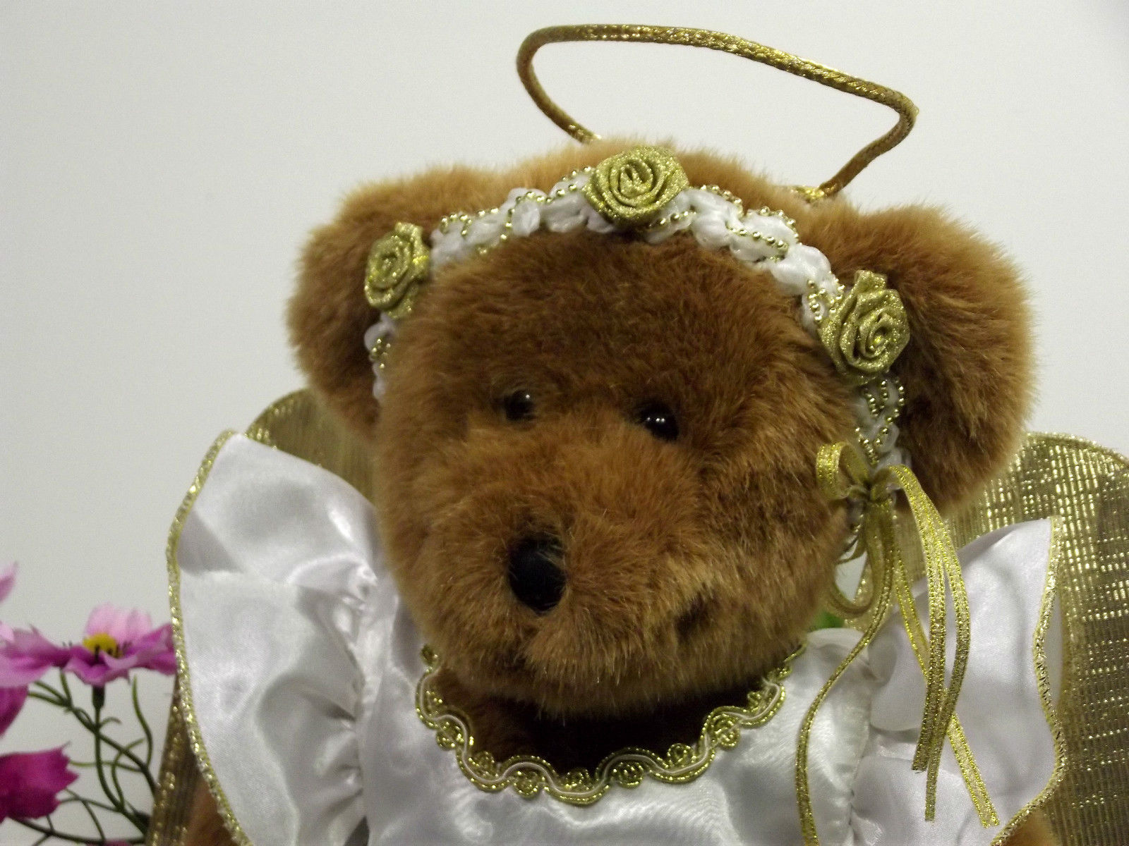 (Y24K3B3) Build-A-Bear Plush Brown Bear Stuffed Animal Angel White Gold Dress