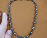 (Internal #V489-3) You are bidding on a beautiful, handmade, 16" long black Hematite gemstone bead necklace with oval faceted 12x8mm and 4mm round beads, silver color barrel twist closure.