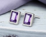 - 0.28Ct Amethyst Stud Earrings | Rectangle 925 Sterling Silver | Feb Birthstone