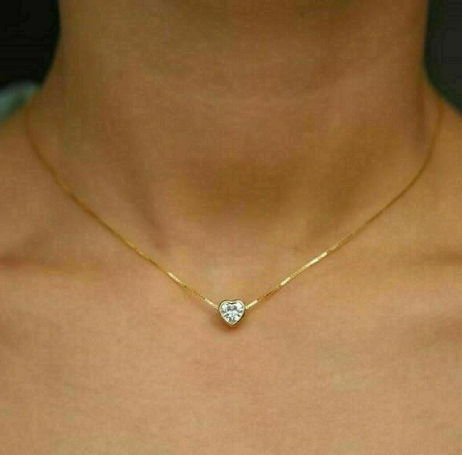 0.50 Ct Heart Cut Diamond Solitaire Bezel Pendant 14K Yellow Gold Over Chain 18"