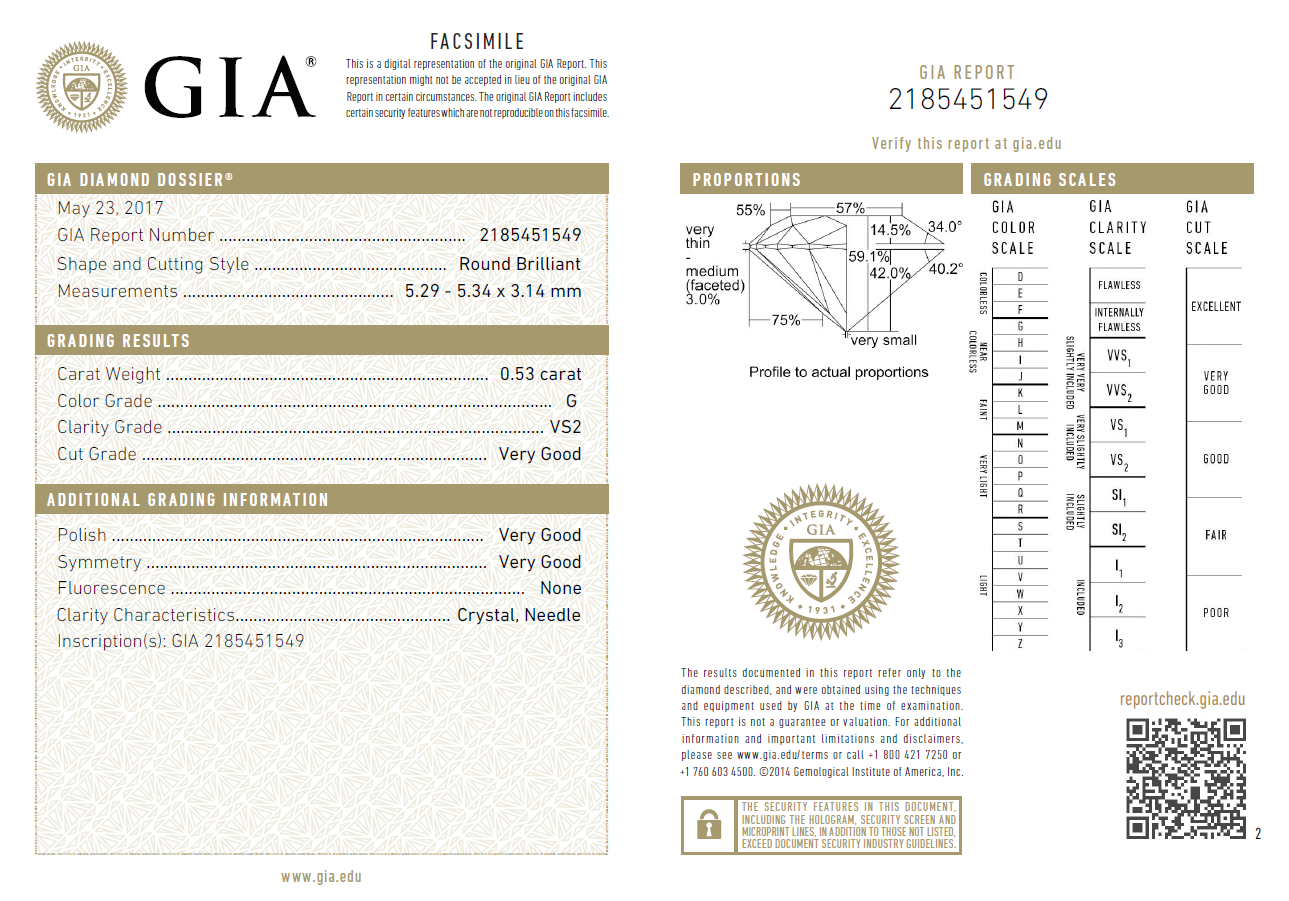 - 0.53 Carat Loose G/ VS2 Round Brilliant Cut Diamond GIA Certified