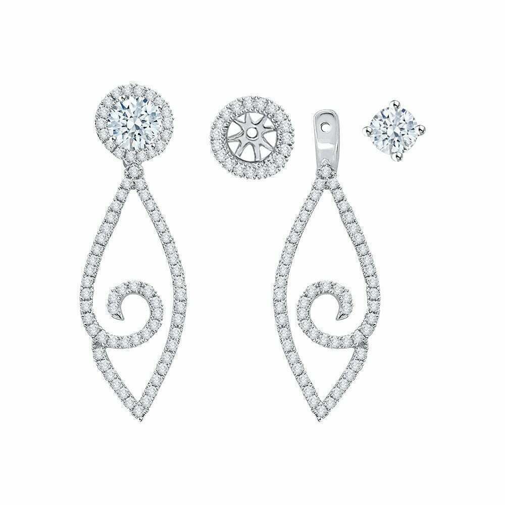 - 0.75Ct Simulated Diamond Drop Jacket Earrings With 14K White Gold Plated Silver