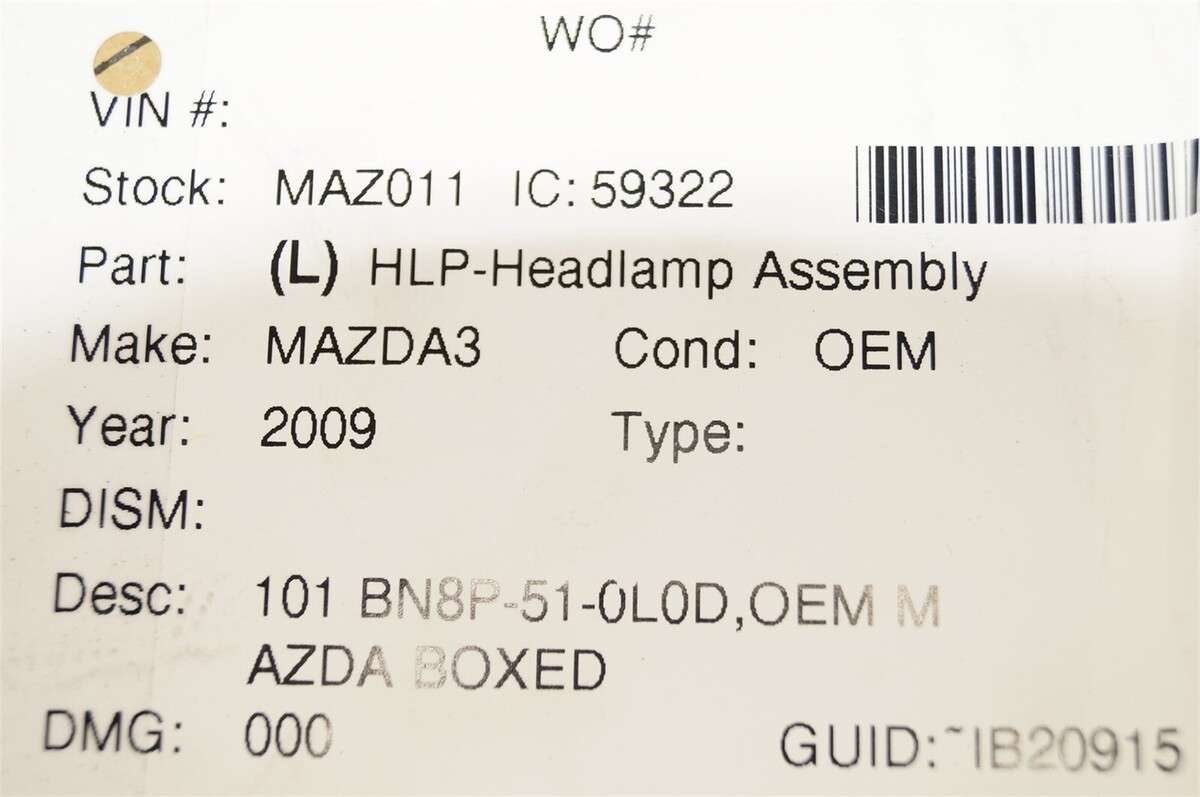 Part: 04-08 Mazda 3 Sedan Halogen Headlight Head Light Lamp Driver Left LH,