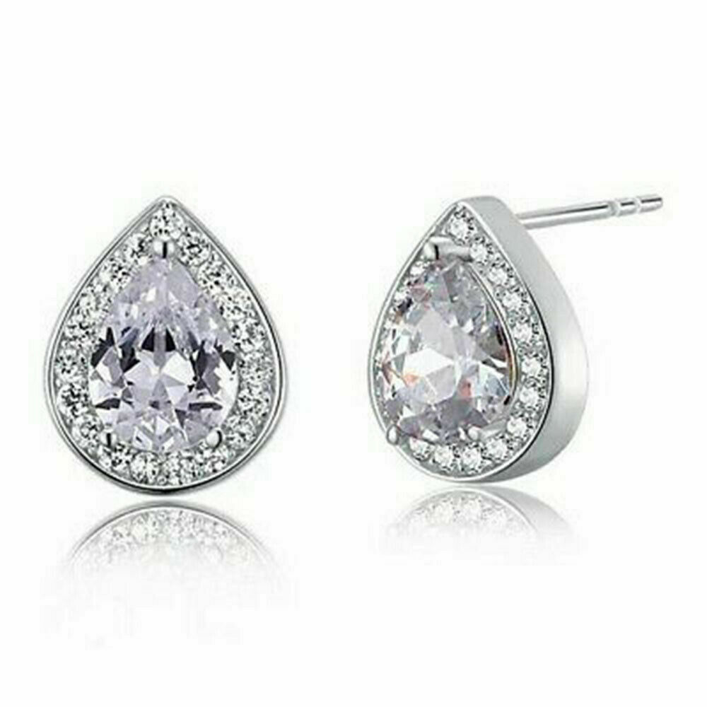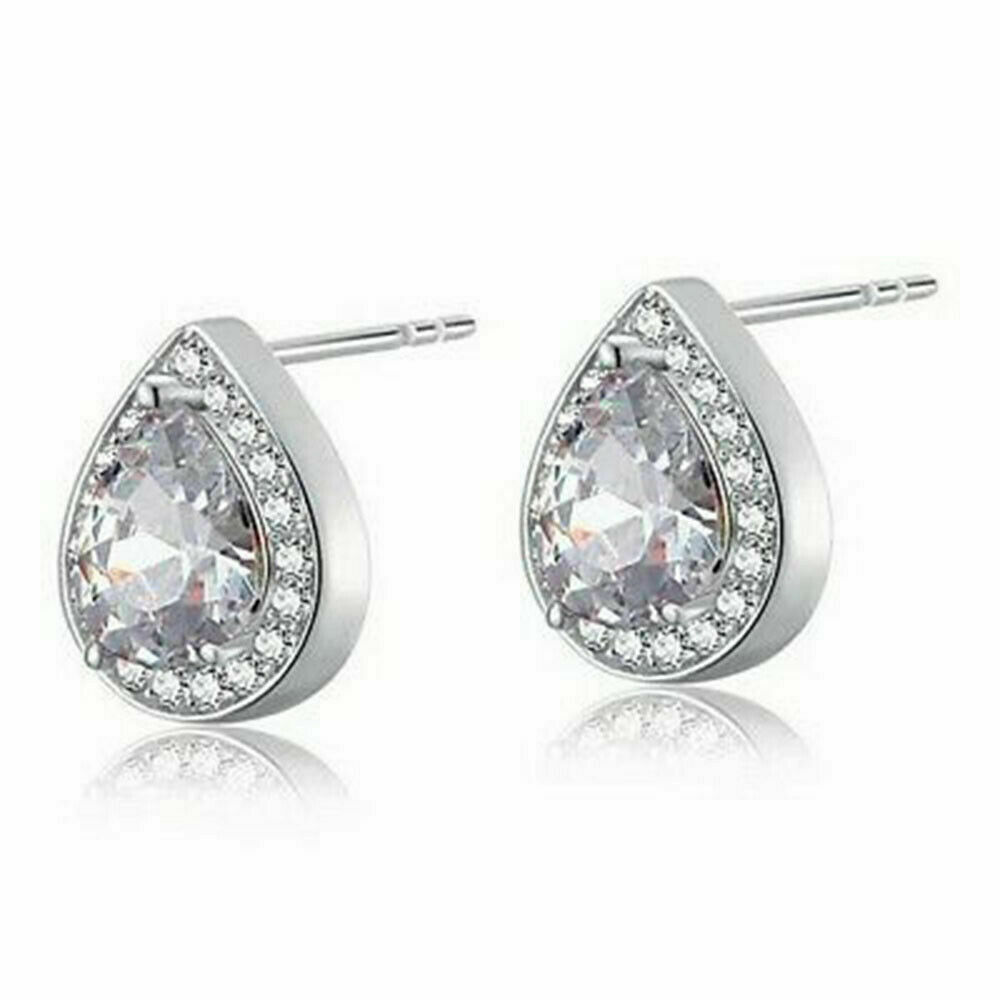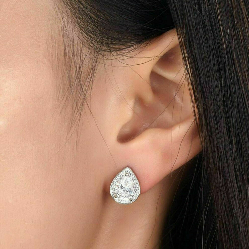 - 1.00 Ct Pear Cut Diamond Halo Stud Earrings Solid Silver 14k White Gold Over