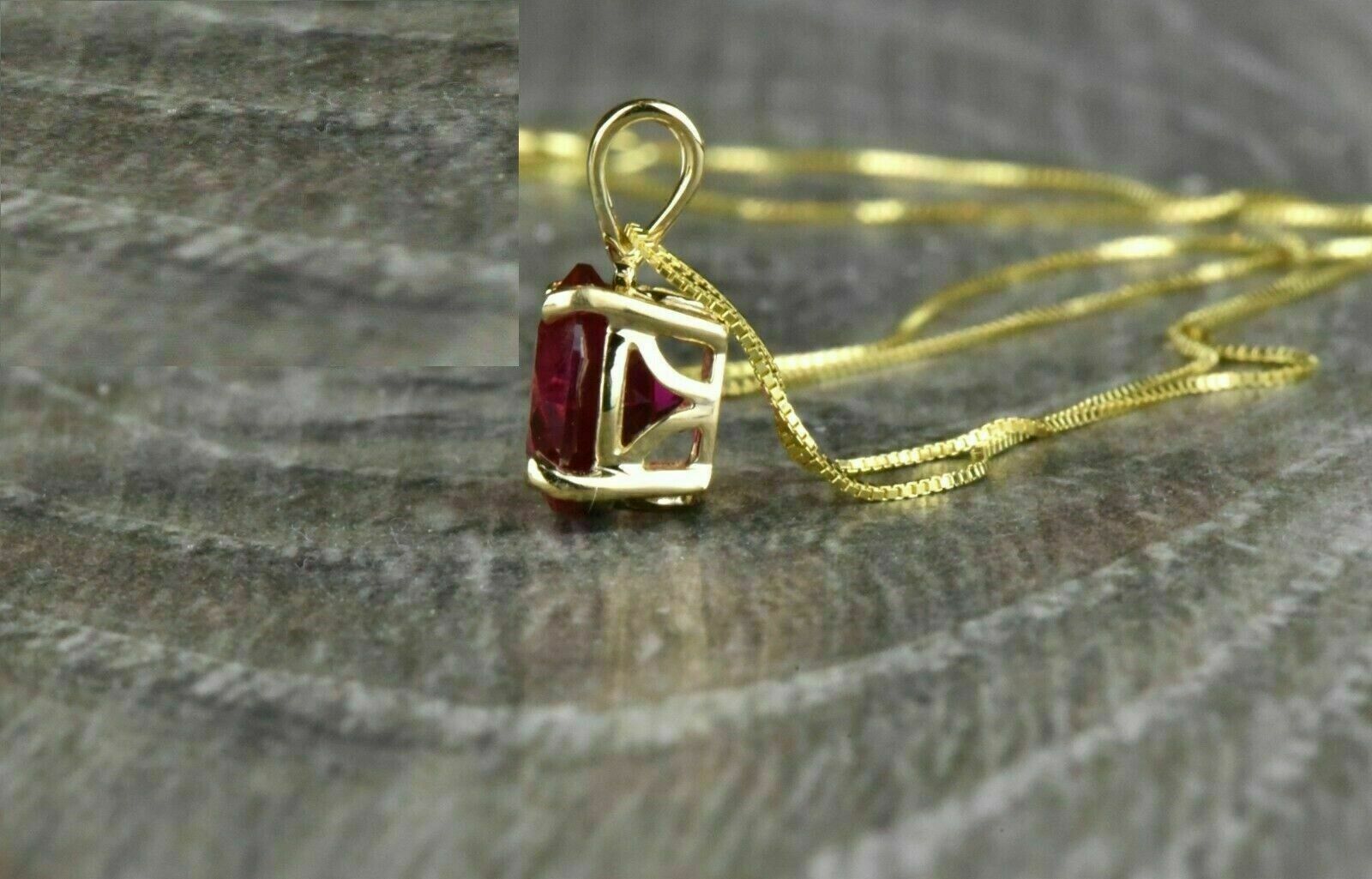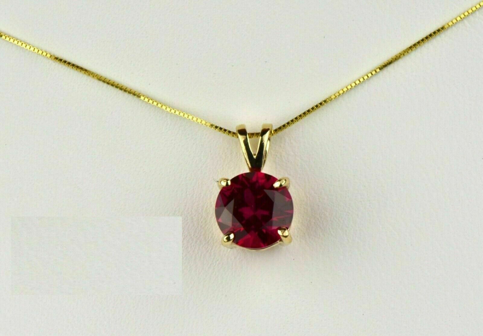 - 1.00 Ct Round Cut Red Ruby Solitaire 14K Yellow Gold Over Pendant Chain Necklace