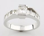 1.05 carat Radiant and Baguette Diamond 18k White Gold Engagement Ring Size 6