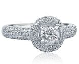 - 1.12 Ctw Round Cut Diamond Engagement Micro Pave Halo Ring 14k White Gold