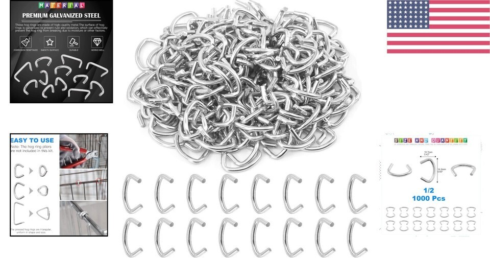 Whether you're a craftsman, a gardener, or someone who simply enjoys DIY projects, this 1/2'' Steel Hog Rings Set is your ultimate solution for versatility and strength. The rust-resistant zinc plating ensures longevity, while the ample quantity allows for multiple projects without the need for constant replenishment.