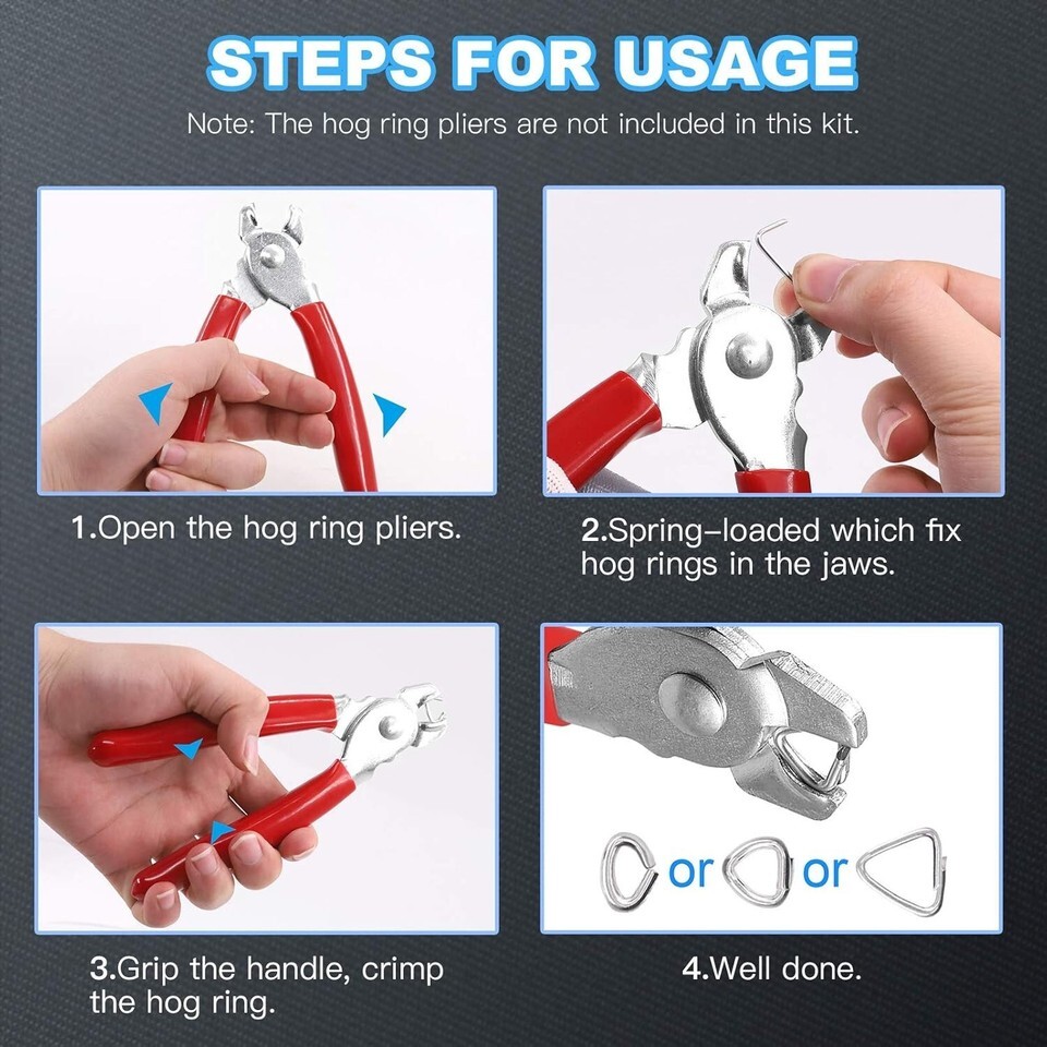 Premium Steel Material: Crafted from high-quality steel, these hog rings are designed to withstand daily use, featuring a zinc-plated finish that prevents rust and oxidation.