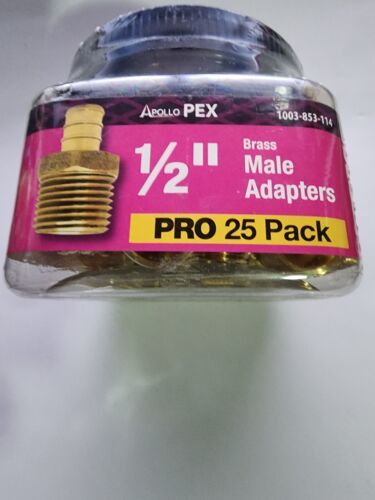 You are Buying a brand New And Factory Sealed Apollo 1/2 in. Brass PEX-B Barb x Male Pipe Thread Adapter Pro Pack (25-Pack) Model # APXMA1225JR... The ApolloPEX system is a comprehensive piping system comprised of brass fittings, poly alloy fittings, manifolds, valves, fasteners, tools and tubing designed for implementation in water delivery systems, simple or complex.