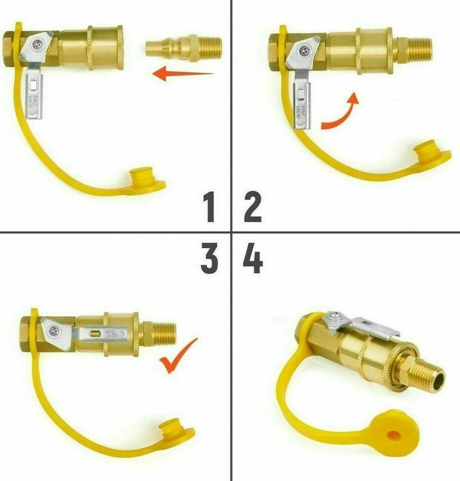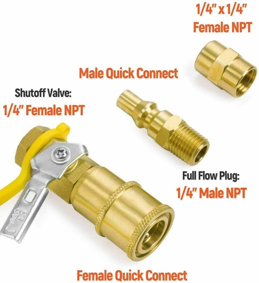 1/4" RV Gas Propane Quick Connect Fittings Shut-off Valve |