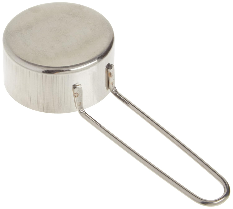 This measuring cup works for casual commercial measuring or home use. Made of sturdy stainless steel to prevent rust or corrosion over years of professional use. The handle is also made from stainless steel and is formed in a wire design to allow an easy grip as well as clean surface and place to hang the cup. A slight lip on one edge helps guide liquids out of the cup to prevent spillage without taking away from the smooth cylindrical design. Measuring cups provide the precise measurements needed to create perfect pastries, pastas or any recipe. Comes in 1/4 cup measuring capacity.